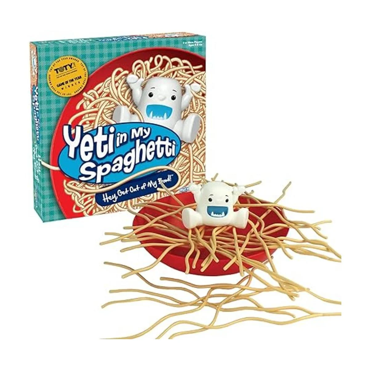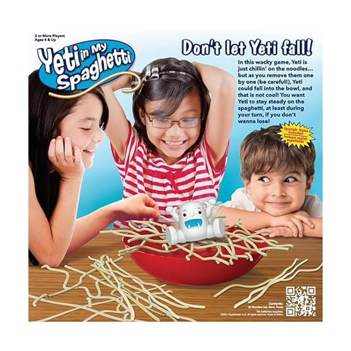 Incluye 30 fideos, un Yeti, un cuenco, reglas pueden no estar en español; para 2 o más jugadores de 4 años o más.