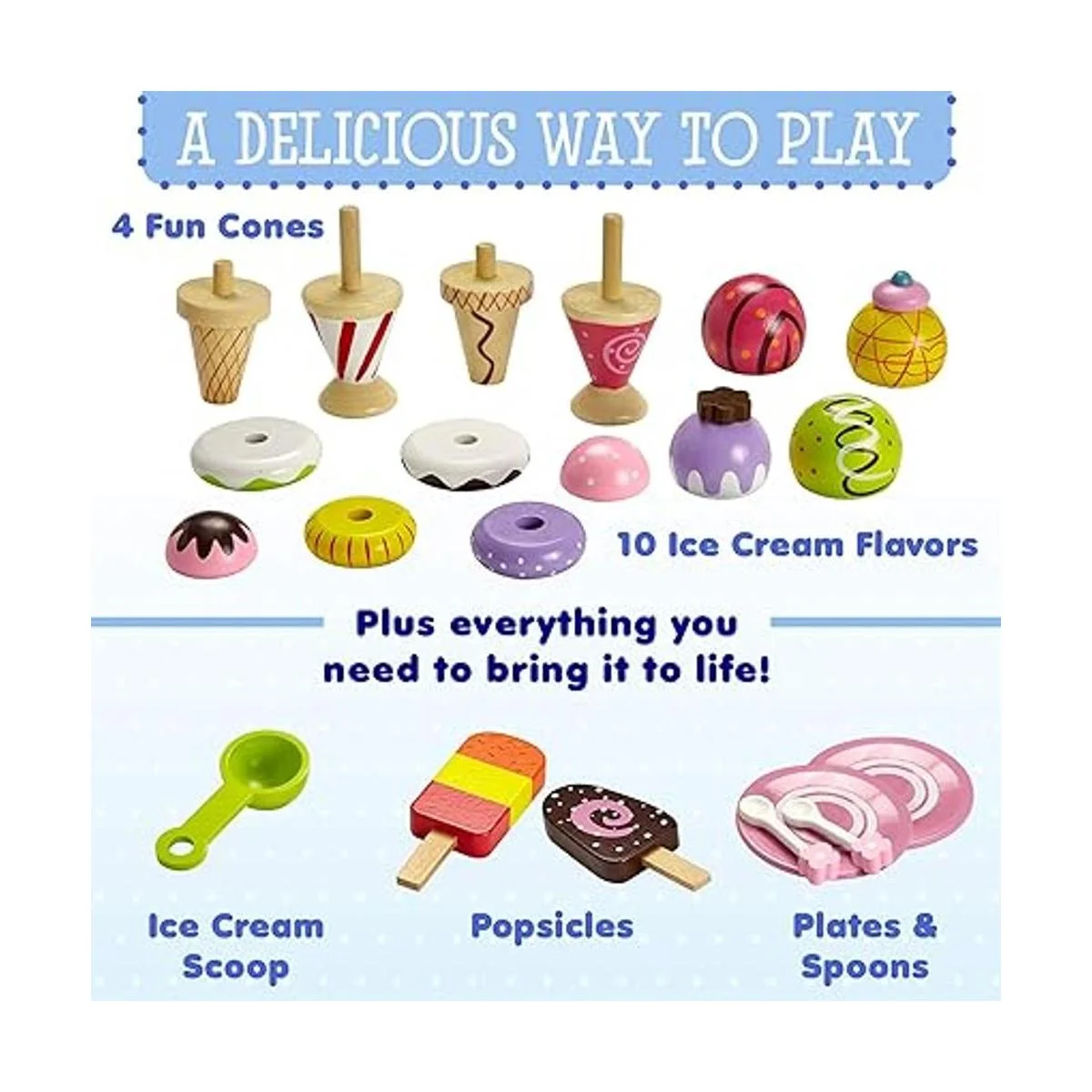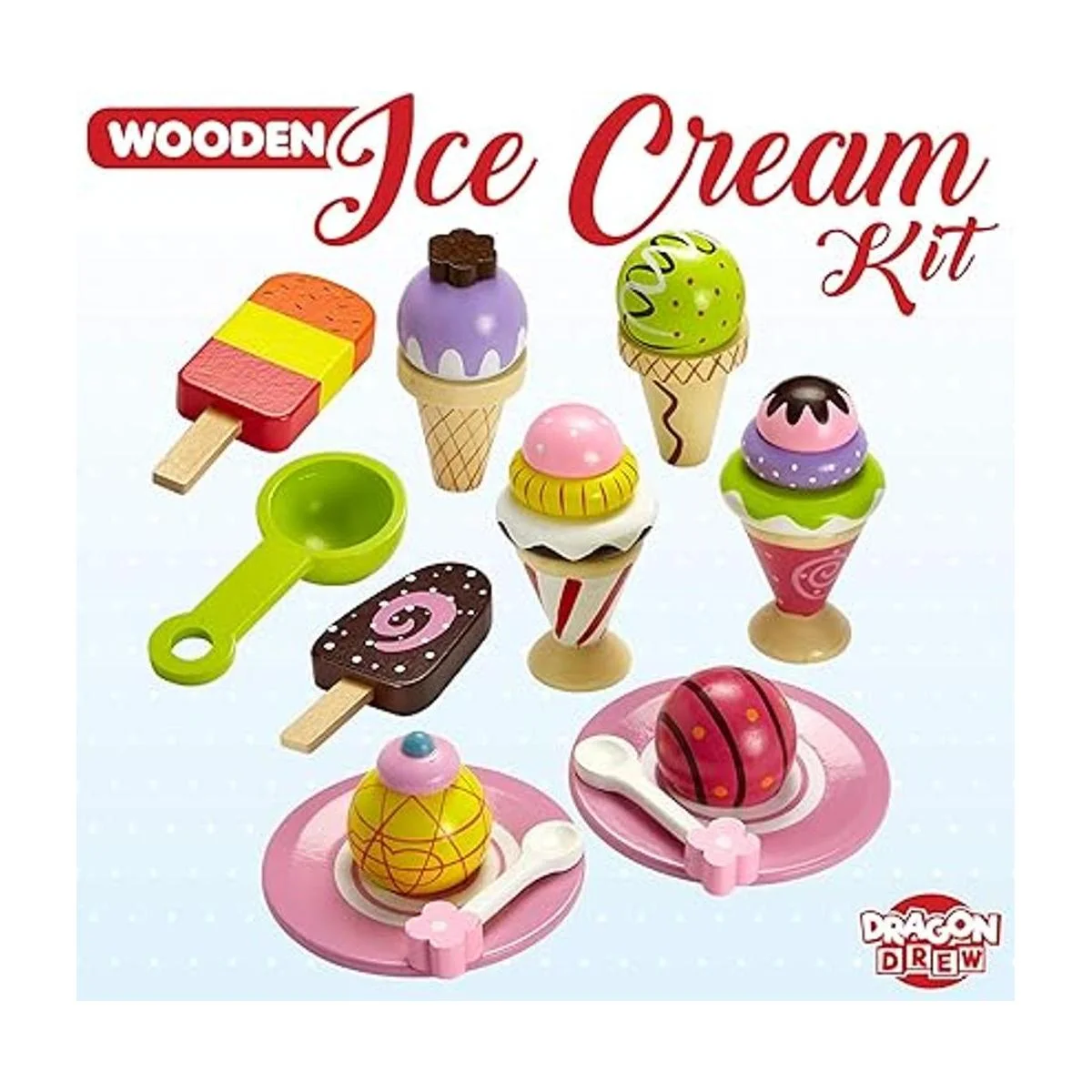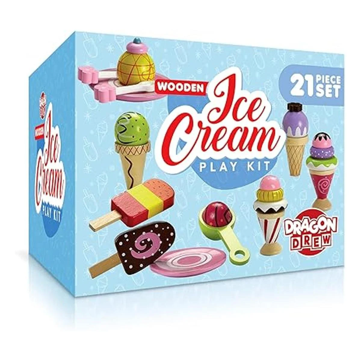 Playset de helado de fantasía hecho 100% de madera verdadera, producto de Dragon Drew (conjunto de 25 piezas)