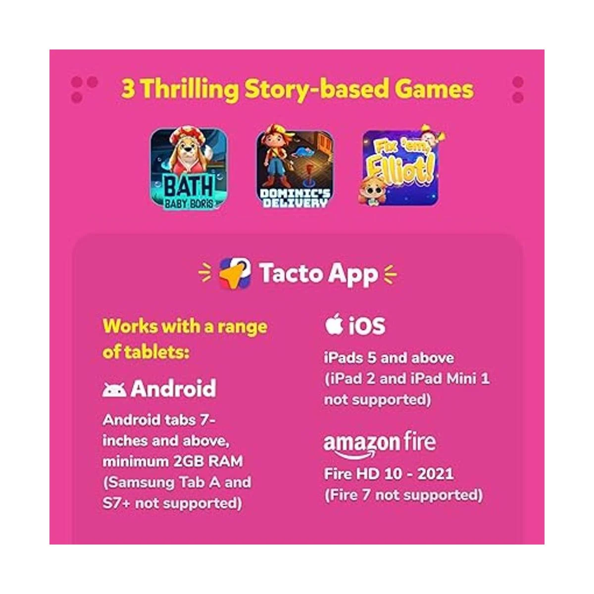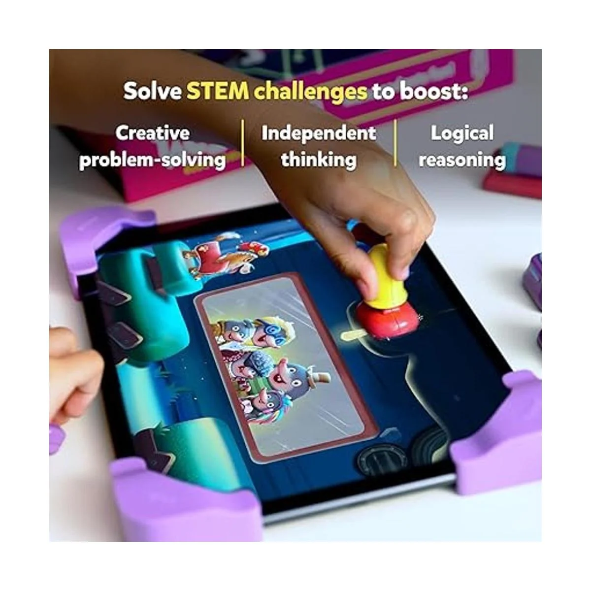 Los 3 juegos basados en historias se dividen en niveles principiantes a avanzados y desarrollan habilidades de resolución de problemas, pensamiento crítico, ingeniería y creatividad. Tacto Electronics es 100 seguro para los niños, ya que la tableta es el parque infantil
