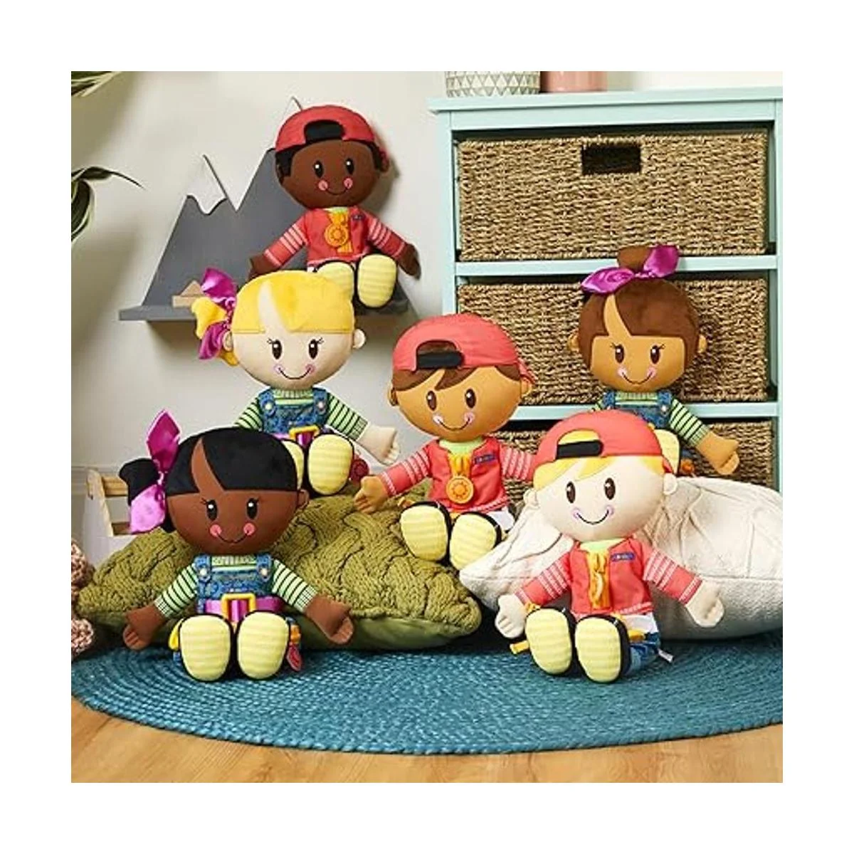 Playskool Dressy Muñeca para niños con cabello negro y sombrero, juguete de peluche de actividad con cremallera, encaje de zapatos, botón, para niños a partir de 2 años exclusivo de Amazon