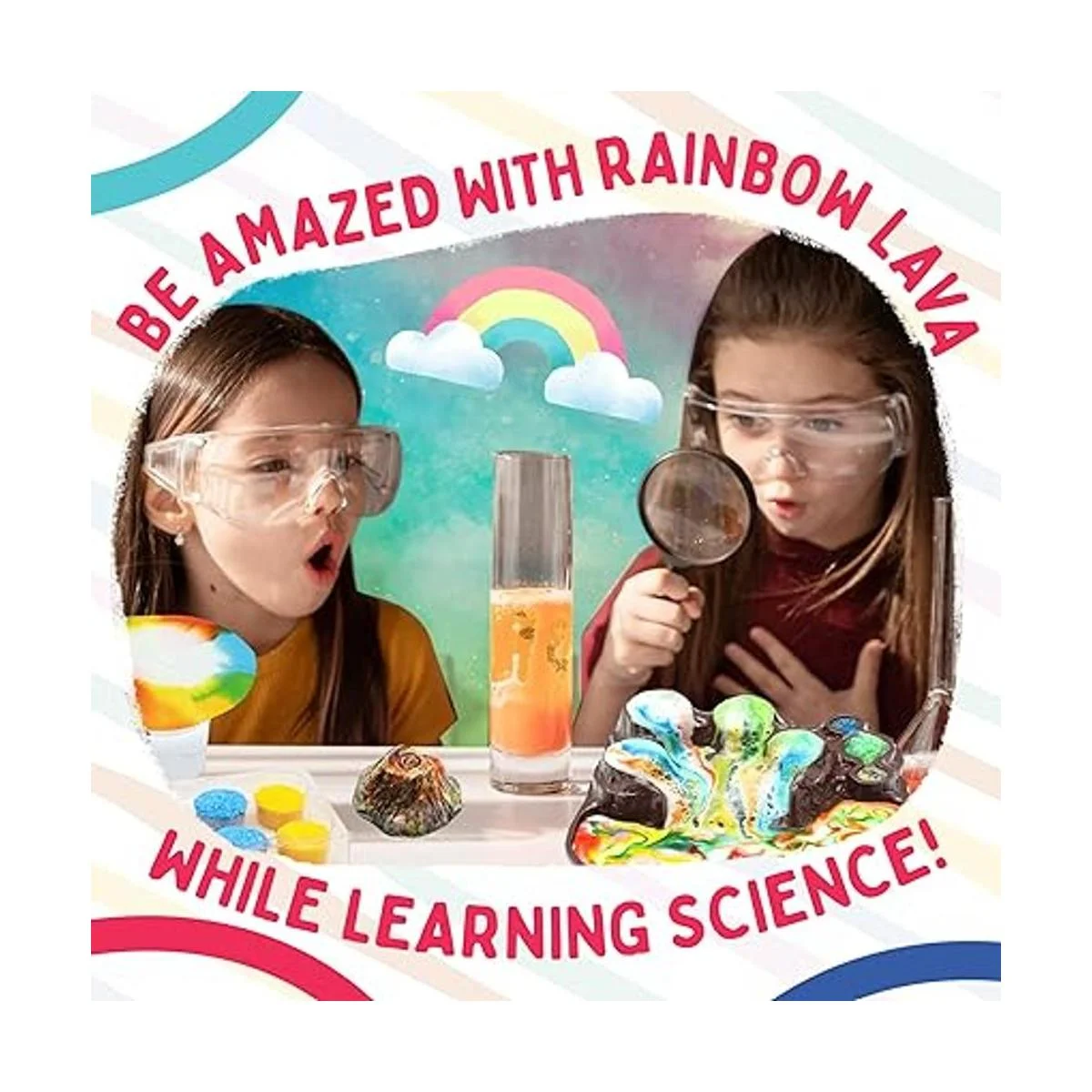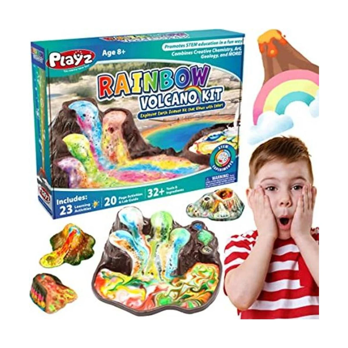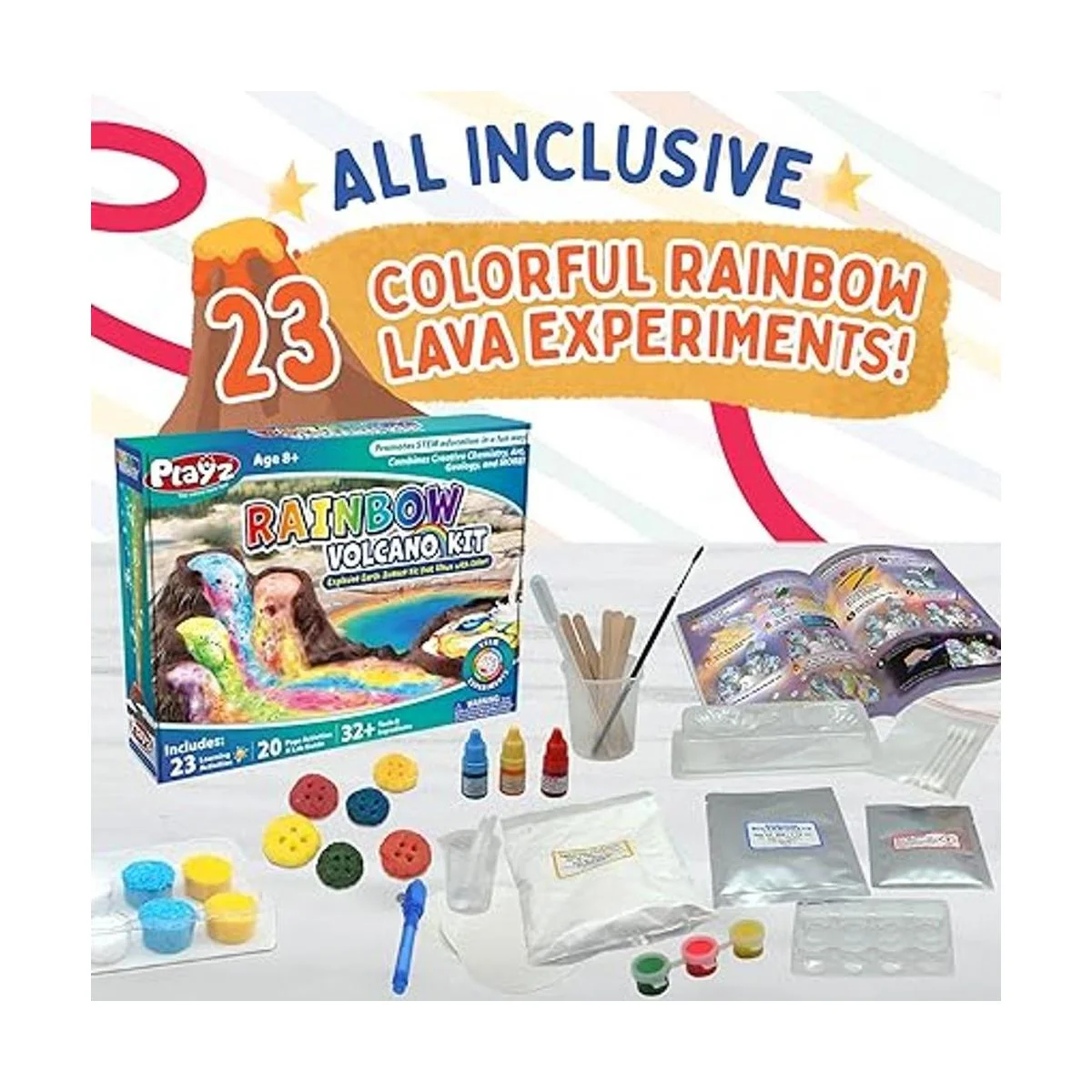 Playz Kit de volcán explosivo arcoíris para niños con más de 23 actividades y experimentos, juguetes de aprendizaje y educación que brillan en la oscuridad, y kits de ciencia de la tierra para niños de 8 a 12 años, niños y niñas