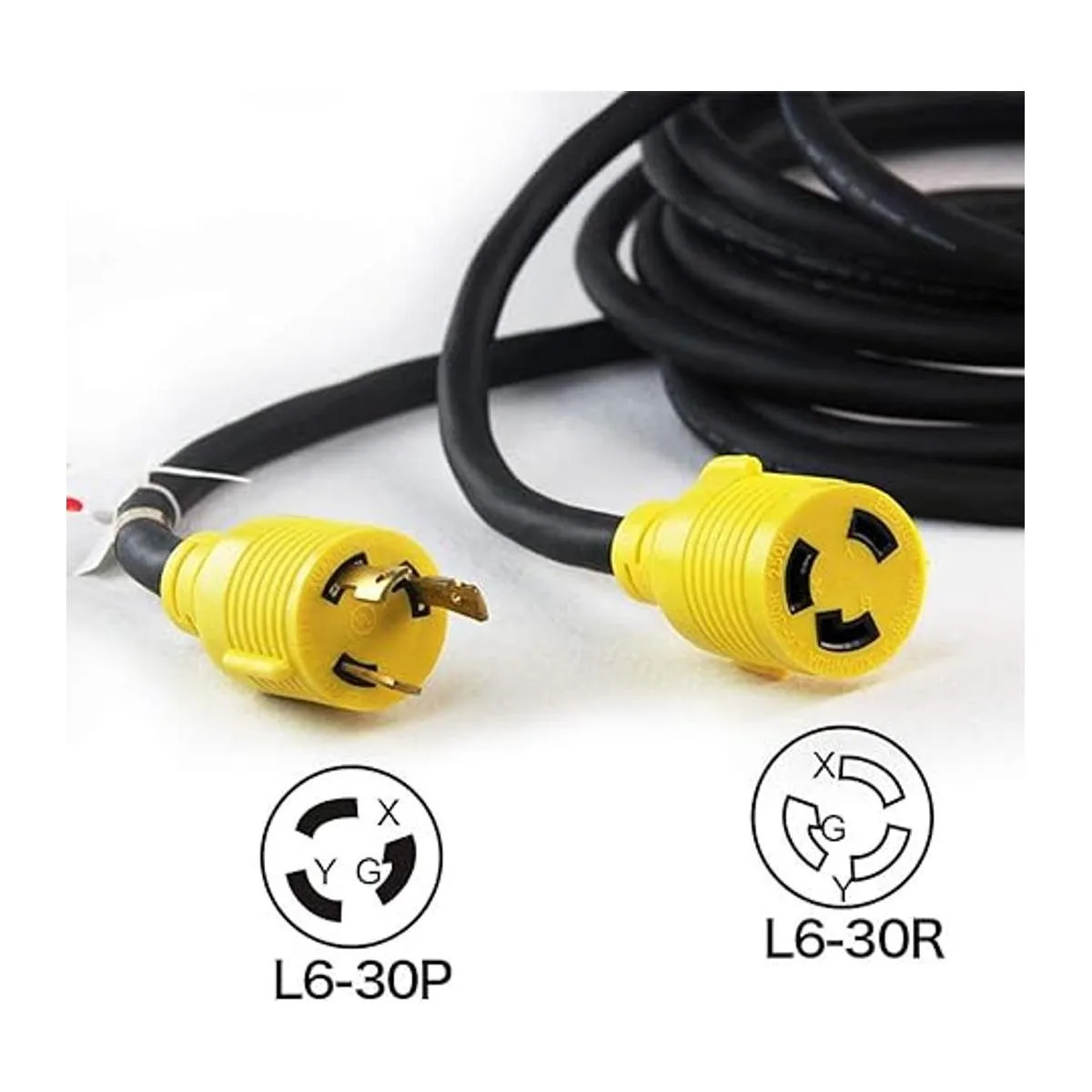 PLIS Cable de alimentación de bloqueo de generador resistente de 25 pies NEMA L630PL630R, calibre 3X10, cable de goma SJOOW de 250 V 30 amperios 7500 vatios, cable de extensión de bloqueo de generador negro con certificación UL