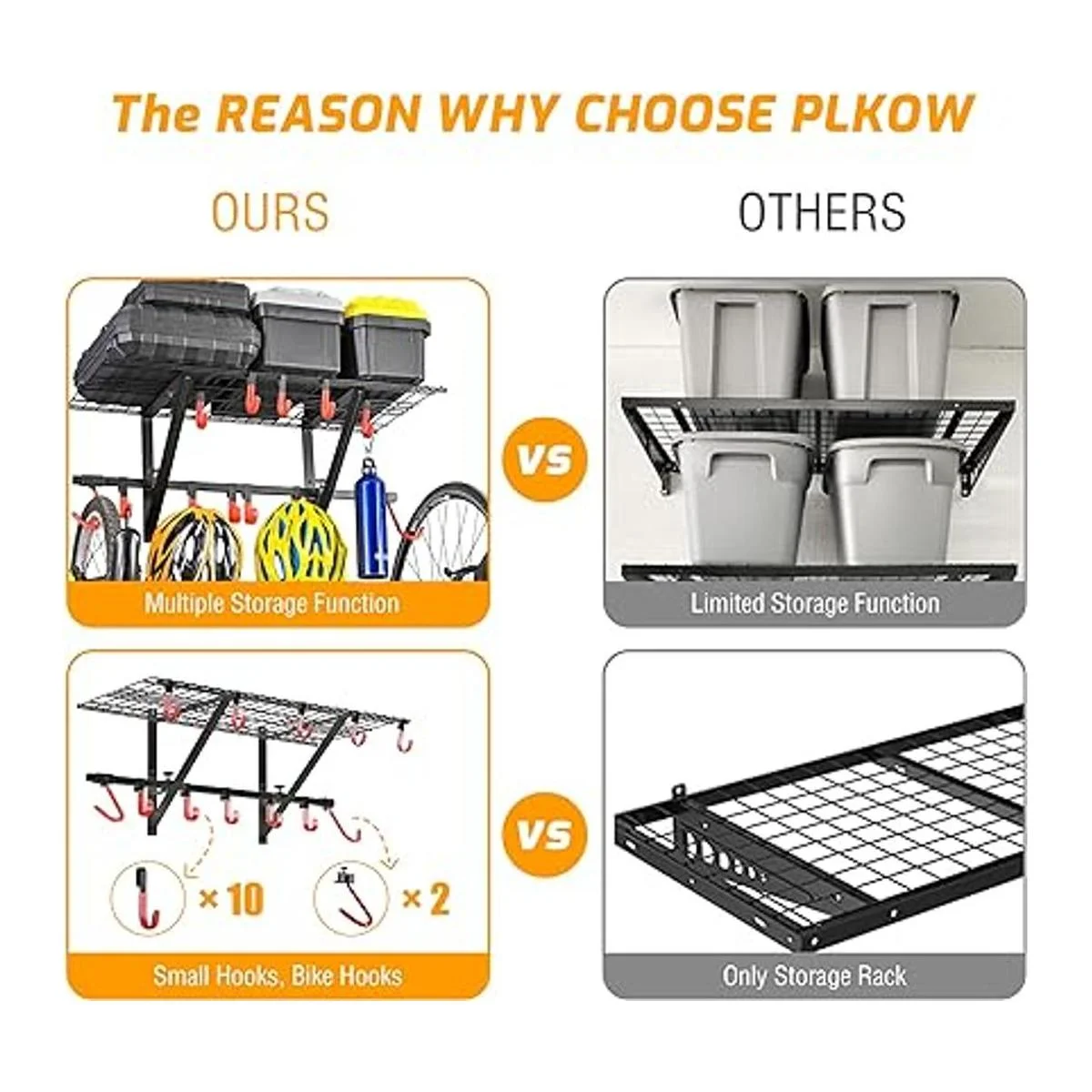 PLKOW Estantería de pared para garaje, paquete de 2 unidades, incluye ganchos para bicicleta, estantes de pared, organizador de garaje con colgador vertical para bicicleta, acero recubierto de polvo paquete de 2