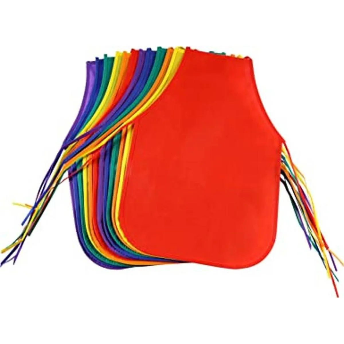 Pllieay 12 delantales de tela de 6 colores para niños de 3 a 7 años no tejidos, delantal de artista aplicado en cocina, aula, evento comunitario, fiesta, manualidades y actividades de pintura artística