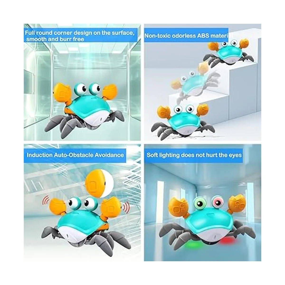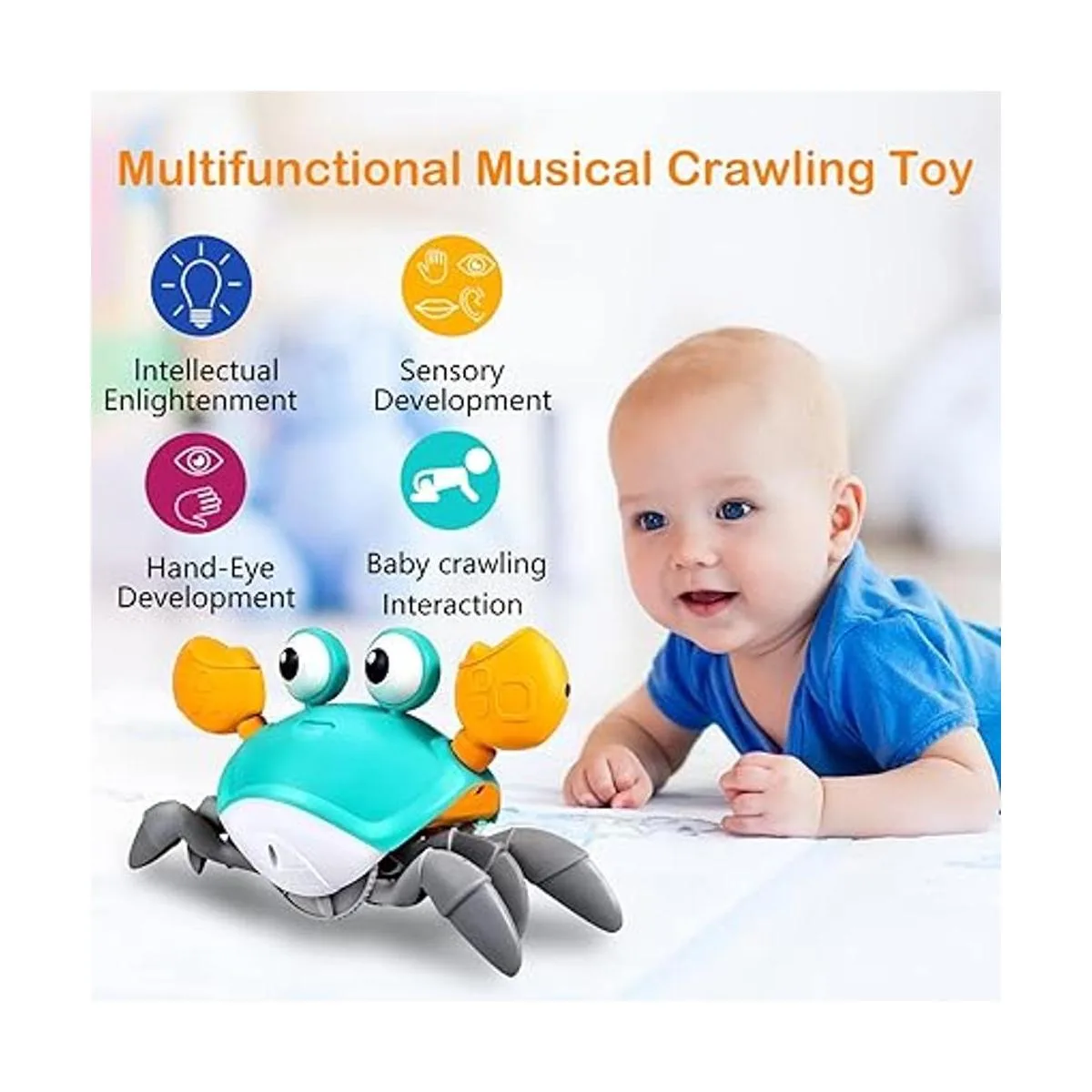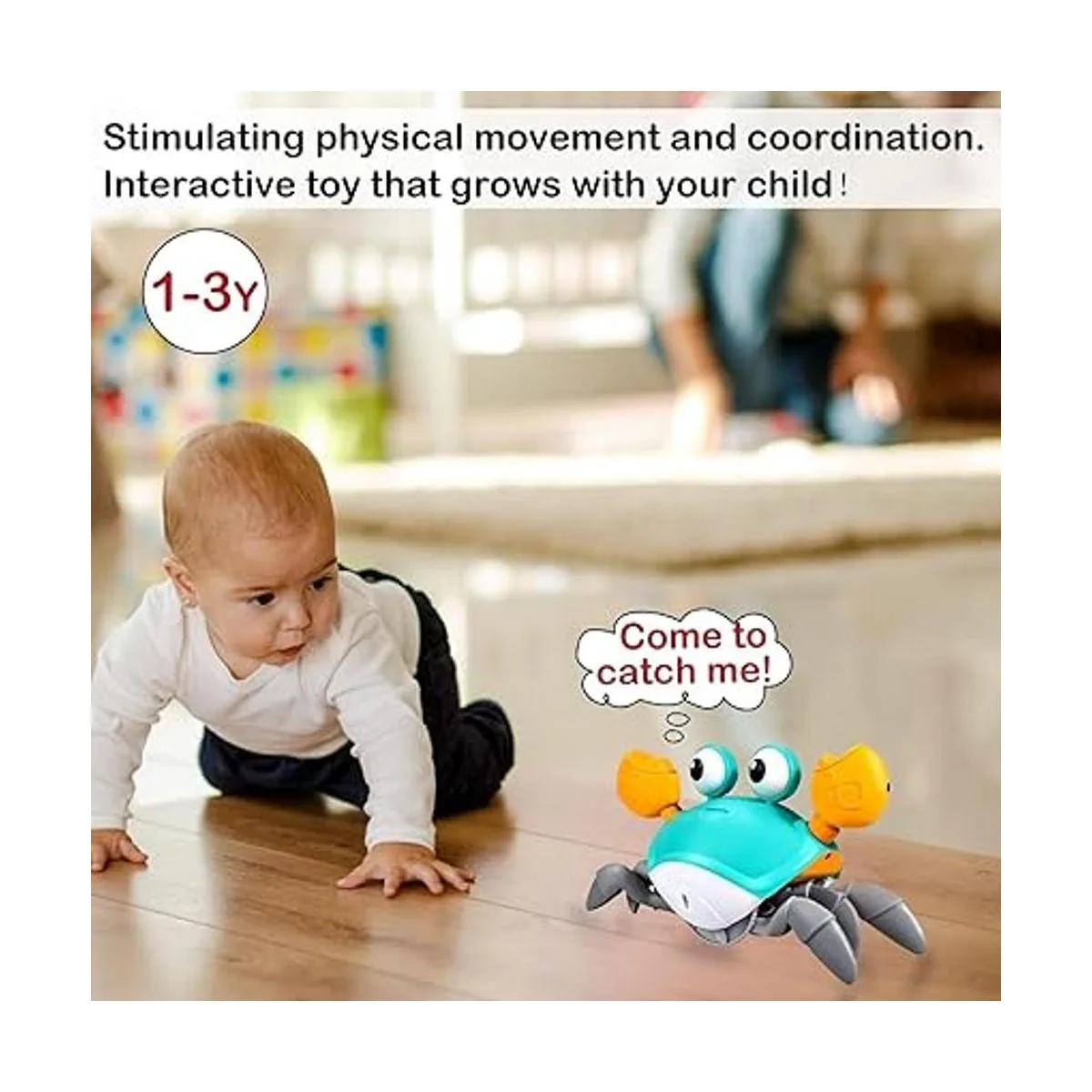 Plnmlls Juguete de cangrejo gatero, juguetes para bebé con música y luz LED que evitarán automáticamente obstáculos, batería recargable integrada para juguete de desarrollo interactivo para niños pequeños