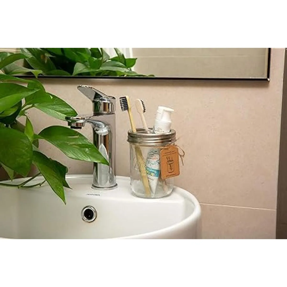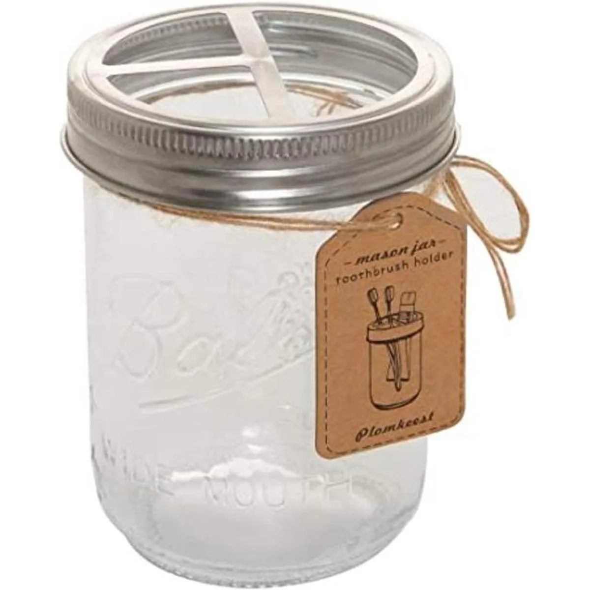 Soporte para cepillo de dientes Mason: cada producto contiene tarro Mason y tapa de soporte para cepillo de dientes de acero inoxidable 304 de alta calidad cepillo de dientes y pasta de dientes no incluidos