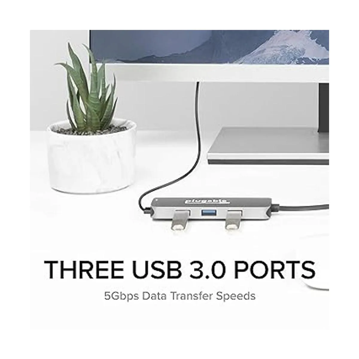 Plugable Hub USBC 7 en 1, compatible con Mac, Windows, Chromebook, USB4, Thunderbolt 4 y más HDMI 4K, 3 USB 3.0, lector de tarjetas SD y microSD, carga de 87 W