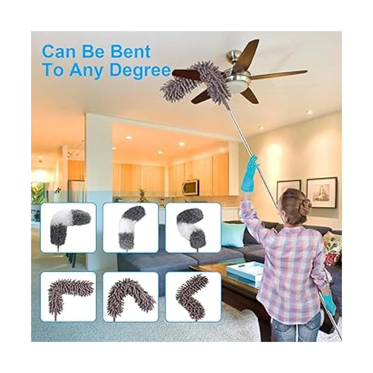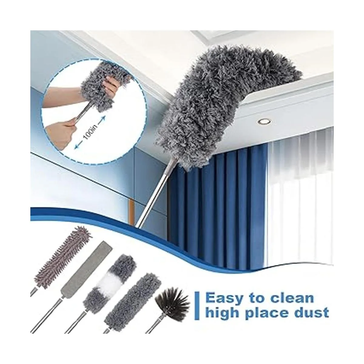 Plumero de microfibra 11 piezas, plumero extensible para limpiar con poste de extensión de 100 pulgadas, plumero lavable, plumero flexible reutilizable para limpiar ventilador de techo, techo alto, TV, persianas, automóviles