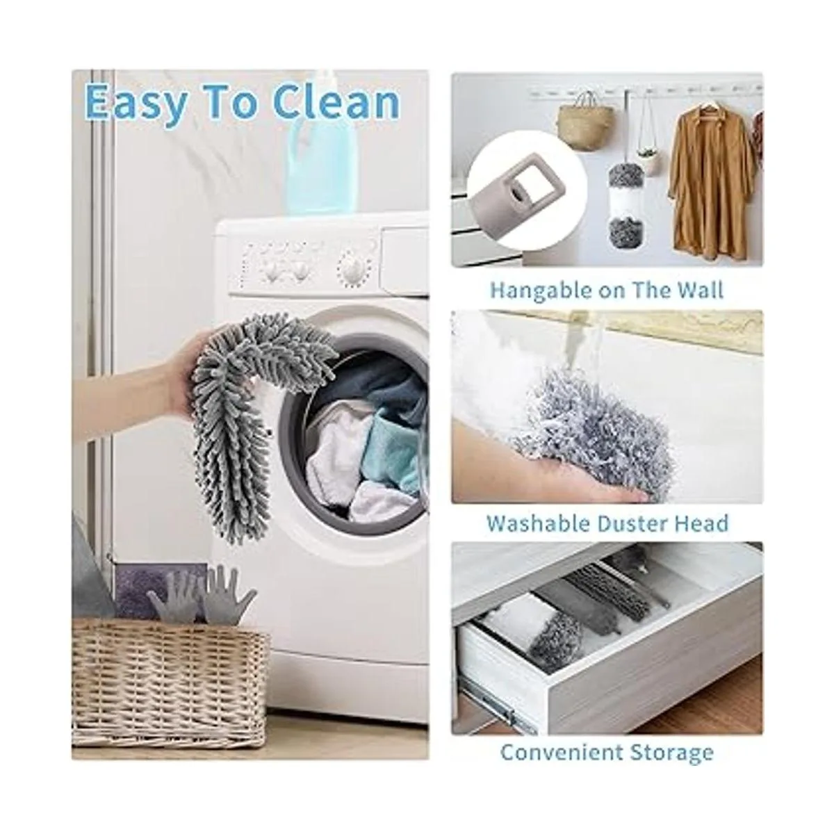 Cabezal de plumero flexible y lavable: con un cabezal de paño de limpieza de microfibra flexible de 360 grados y una cubierta protectora de goma suave. El cabezal de limpieza de microfibra desmontable hace que sea fácil de mantener, retira la cabeza después de su uso y lava el cabezal de limpieza con agua tibia y cuélgalo en un lugar seco y ventilado para que sea esponjoso para el próximo uso.