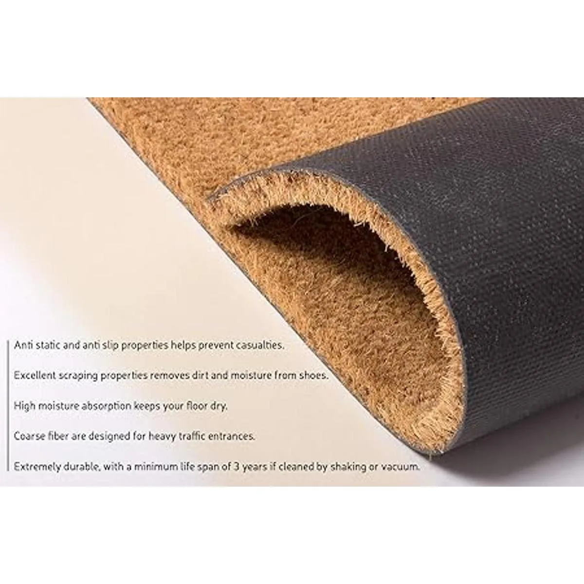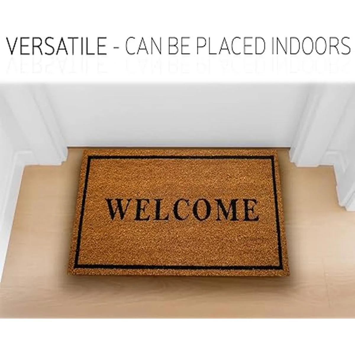 Tapete para exteriores e interiores: este felpudo está diseñado específicamente para uso en exteriores e interiores, por lo que es una opción perfecta para cualquier habitación o entrada de tu hogar. Construido para durar, el coco es un material extremadamente duradero que resistirá la mayoría de las condiciones climáticas.