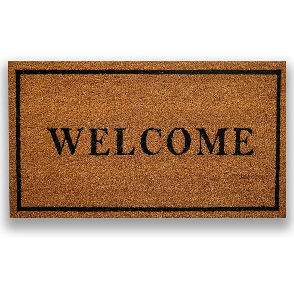 PLUS Haven Tapete con fibra natural de coco pura y respaldo de PVC resistente, tamaño de 17 x 30 pulgadas, grosor de 0.6 pulgadas, color perfecto, tamaño para uso en interiores y exteriores, 1, WELCOME