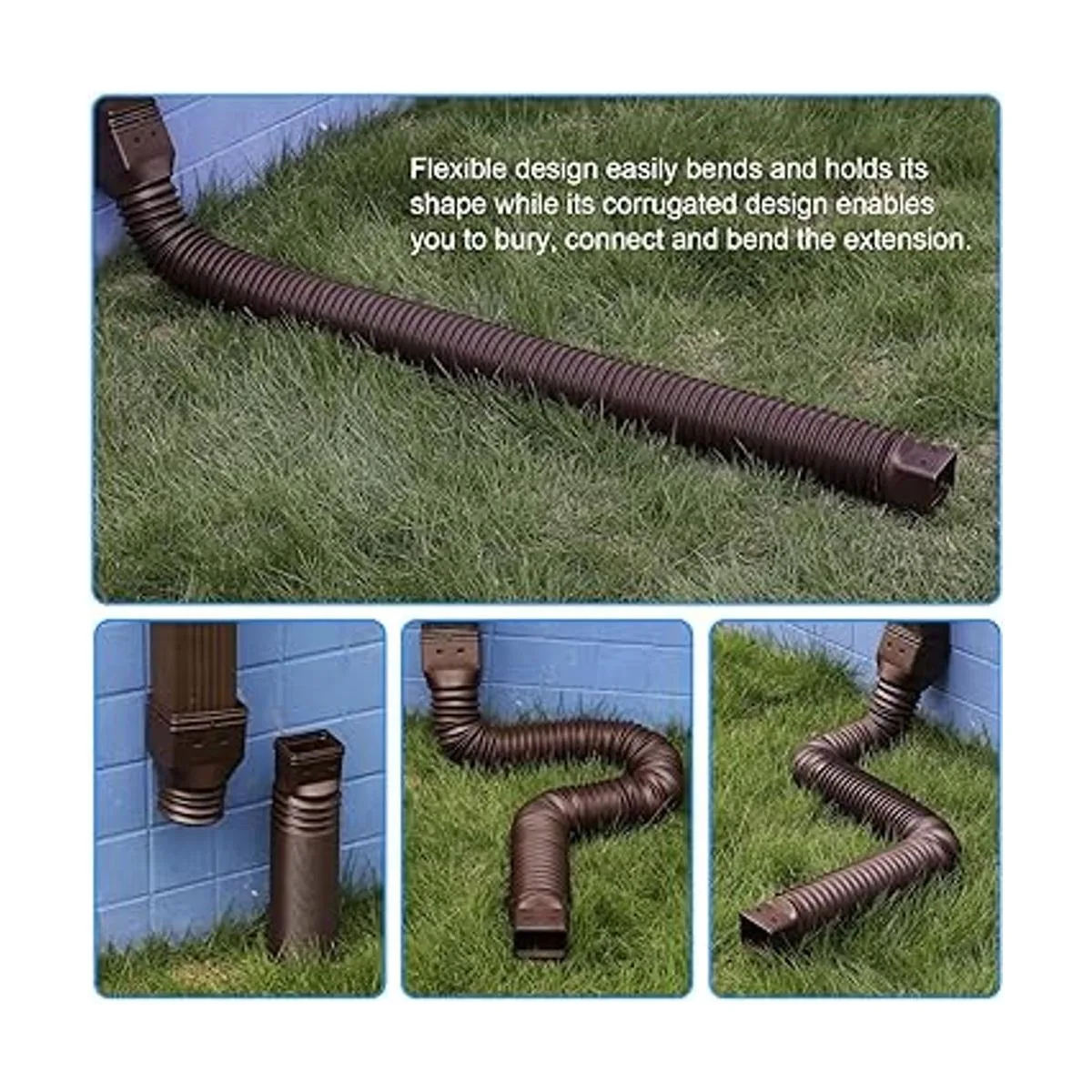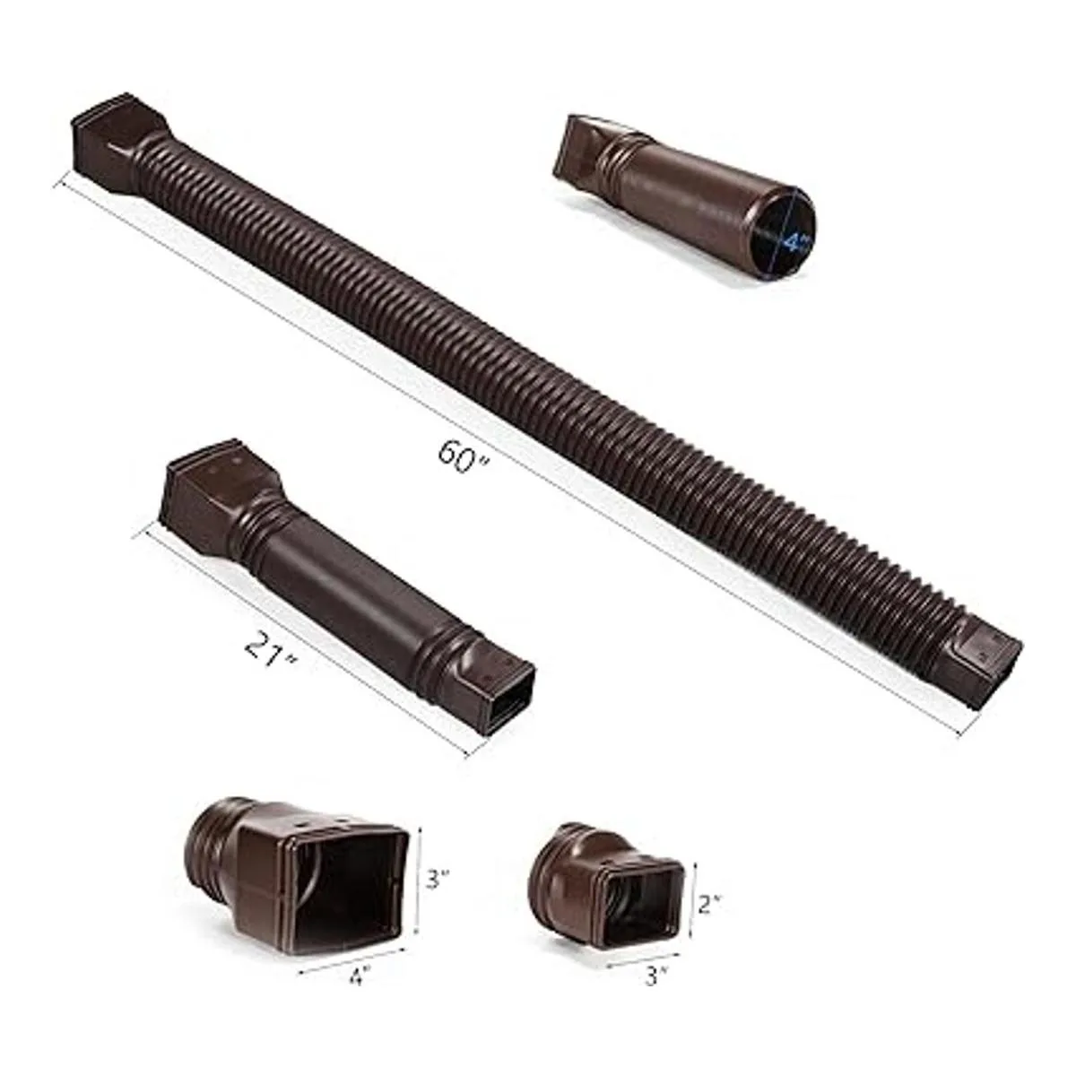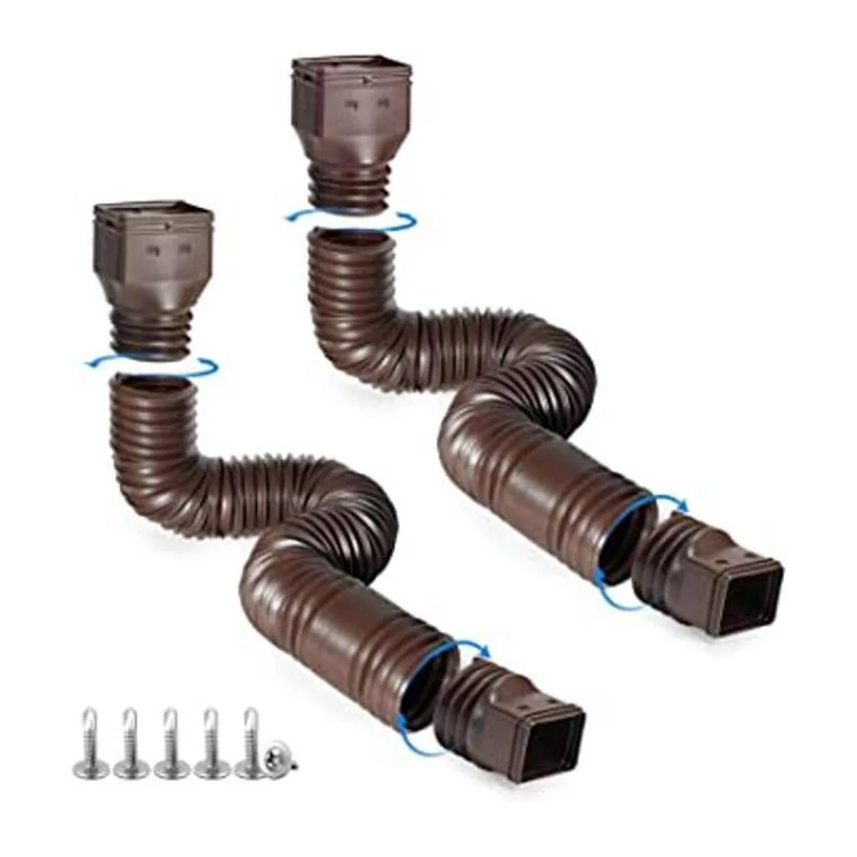 Plusgutter Paquete de 2 extensiones de canalón de lluvia marrón flexibles, extensor de desage de desage, extensor de drenaje de boquilla descendente, conector de canalón, drenaje de agua de lluvia, extensible de 21 a 60 pulgadas.