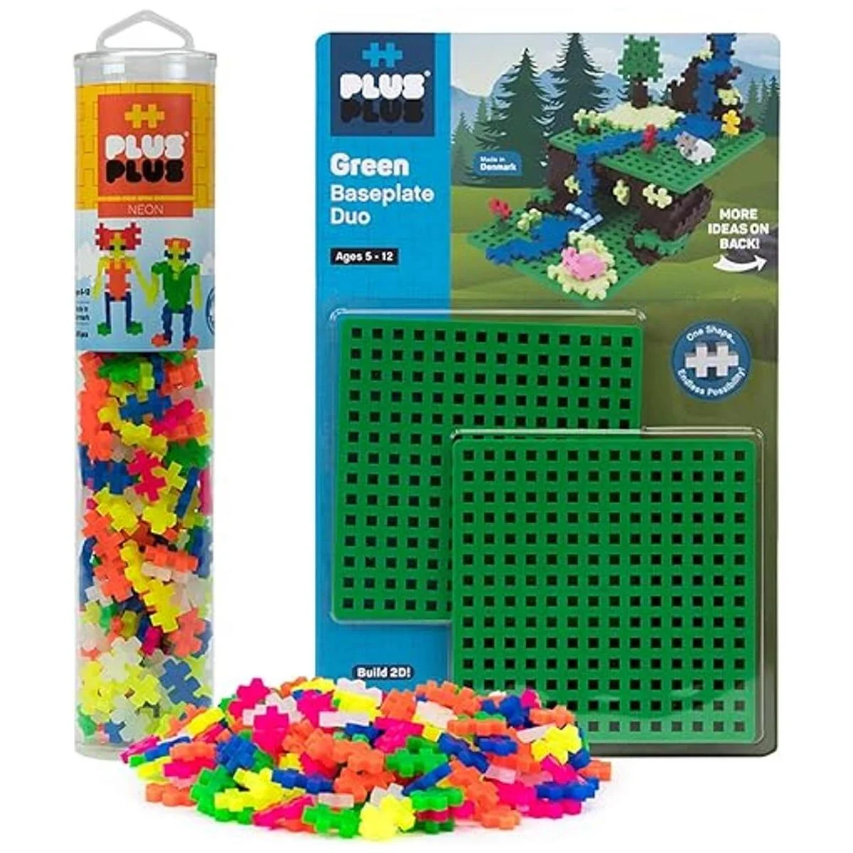 PlusPlus Placa base Duo y 240 piezas tubo de neón Set Construcción STEM Juguete, Interlocking Mini rompecabezas bloques para niños