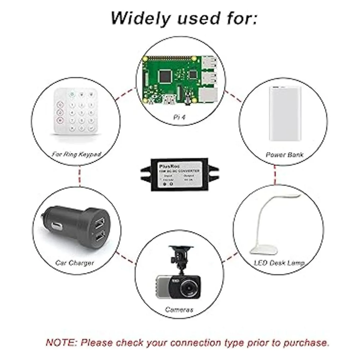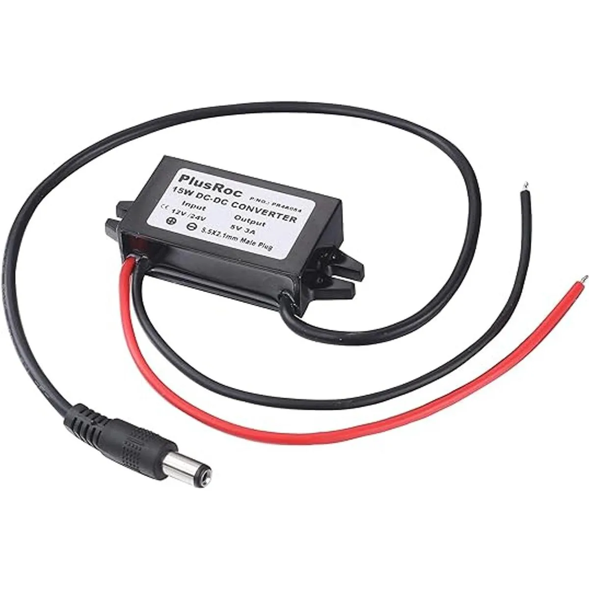 PlusRoc Convertidor impermeable de 12 V24 V a 5 V, módulo reductor de corriente para cámara de seguridad CCTV, tira de luz LED, DVR enchufe macho CC de 0.217 x 0.083 in