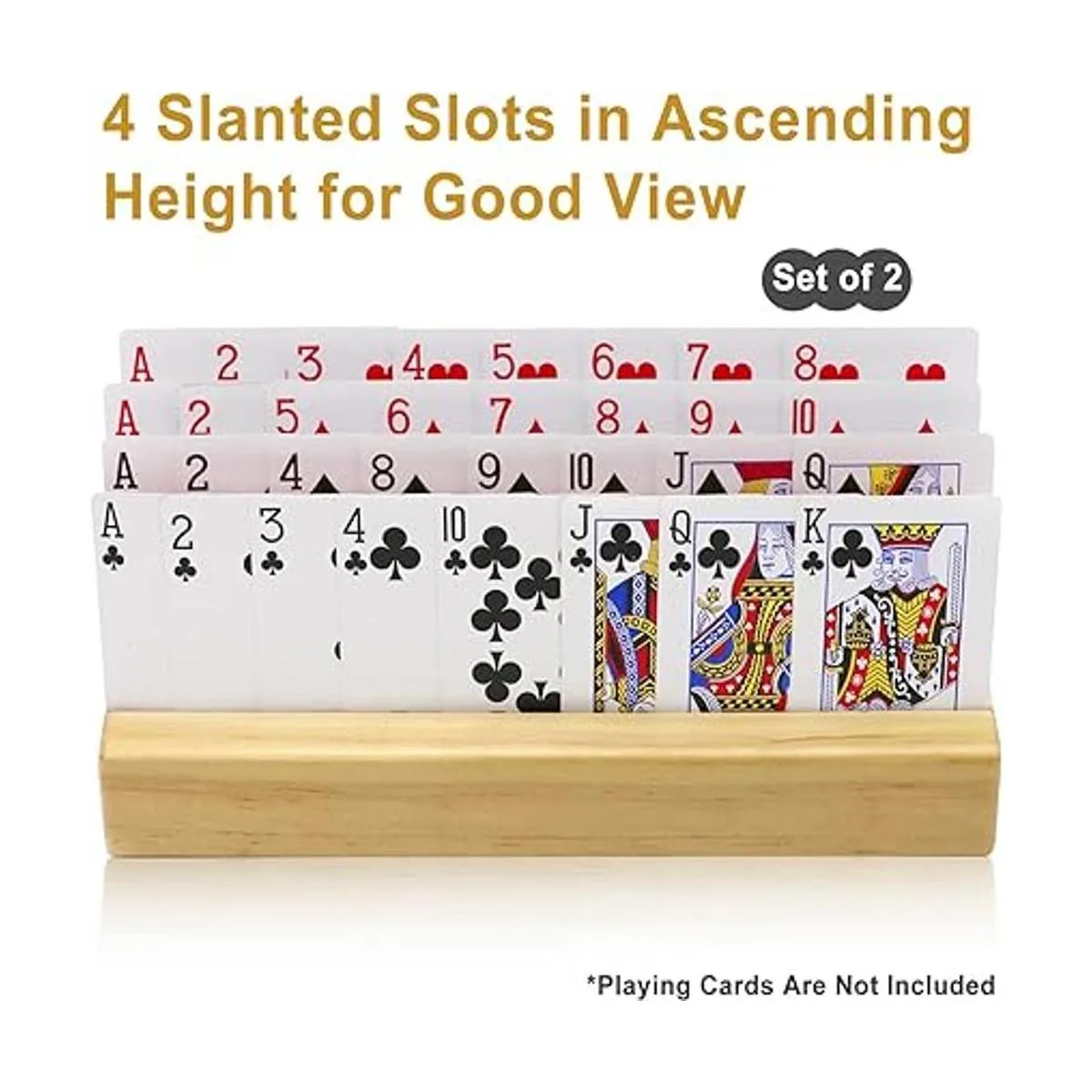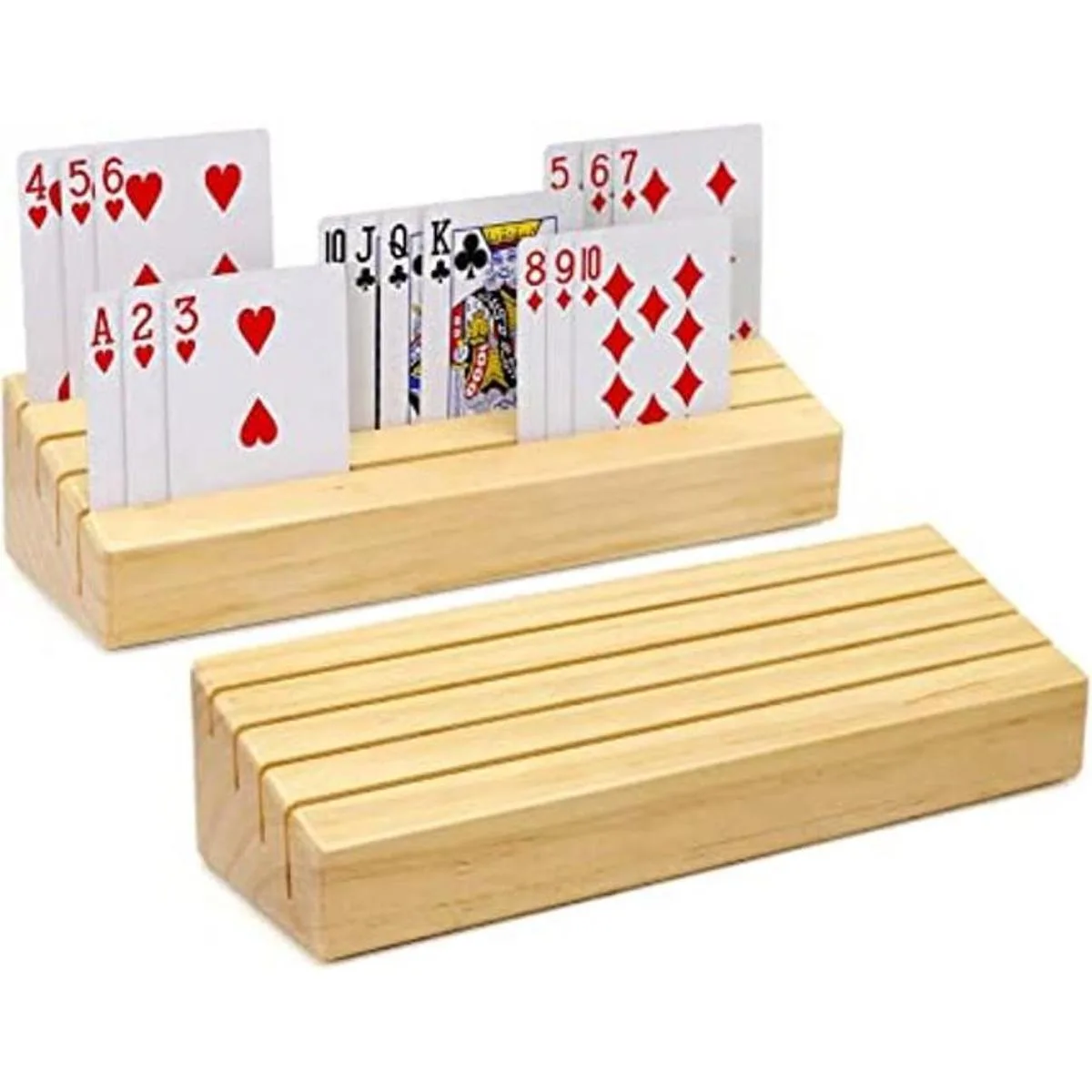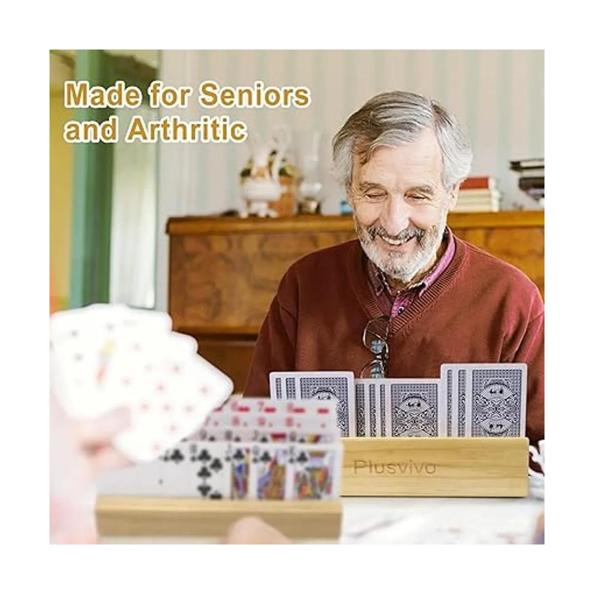 Plusvivo Juego de 2 tarjeteros para naipes de madera maciza de pino para adultos y personas mayores, 9.84 x 3.15 x 2.25 pulgadas, soporte para tarjetas de mano y pie