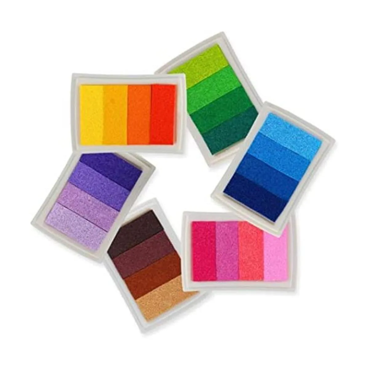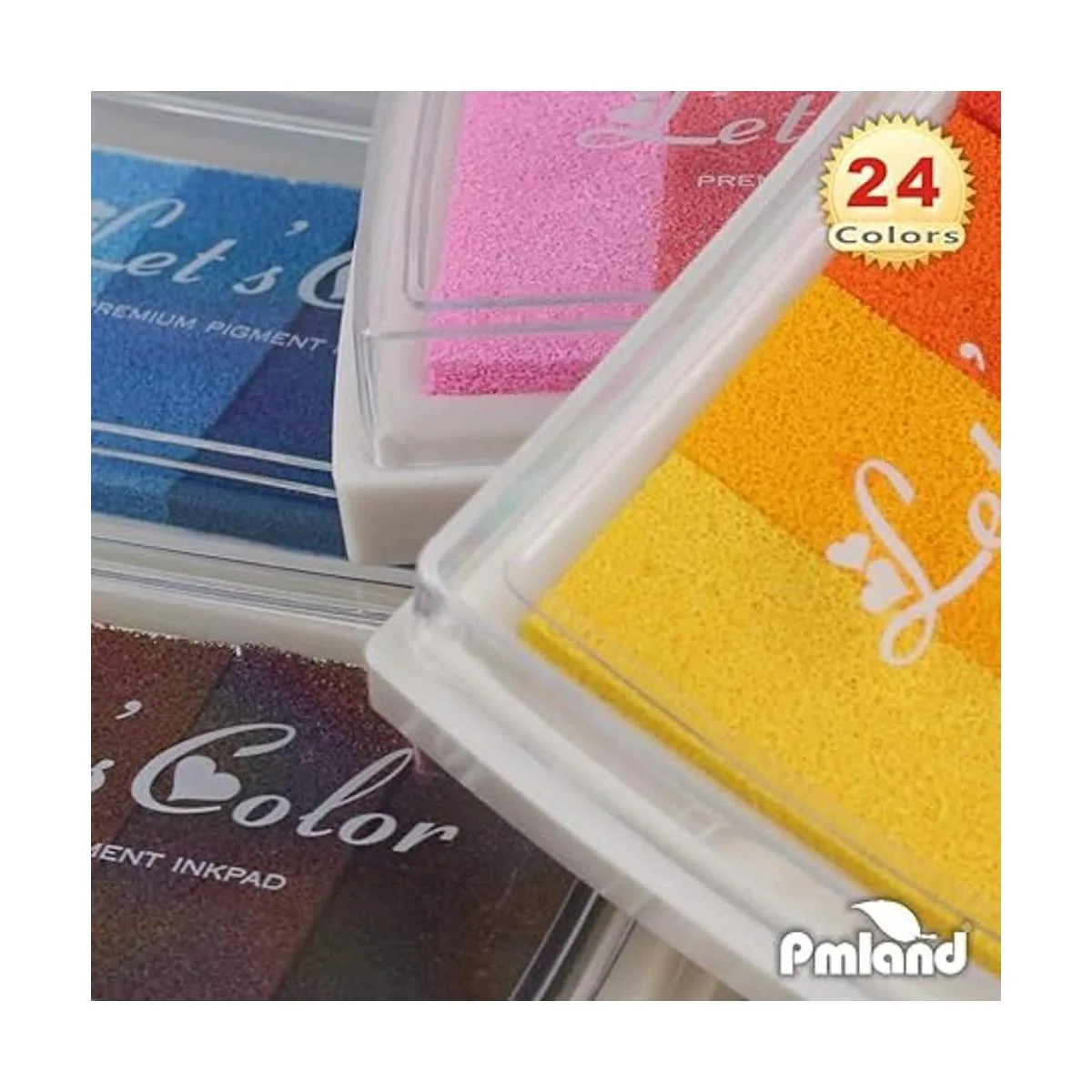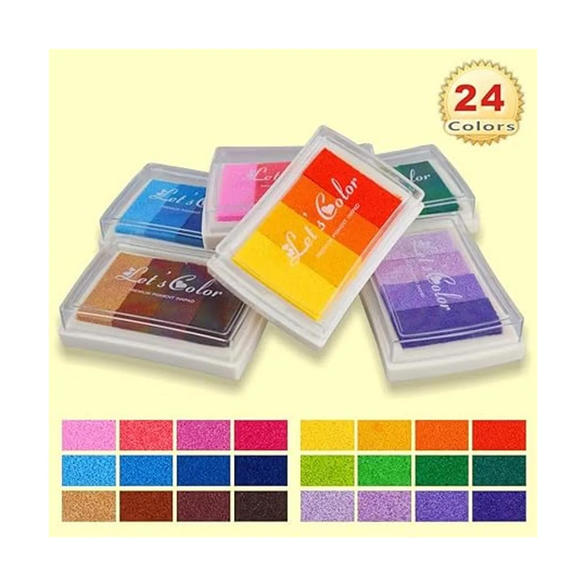 PMLAND Juego de 6 almohadillas de tinta para sellos de bricolaje en tela de madera de papel, 24 colores vibrantes de arcoíris