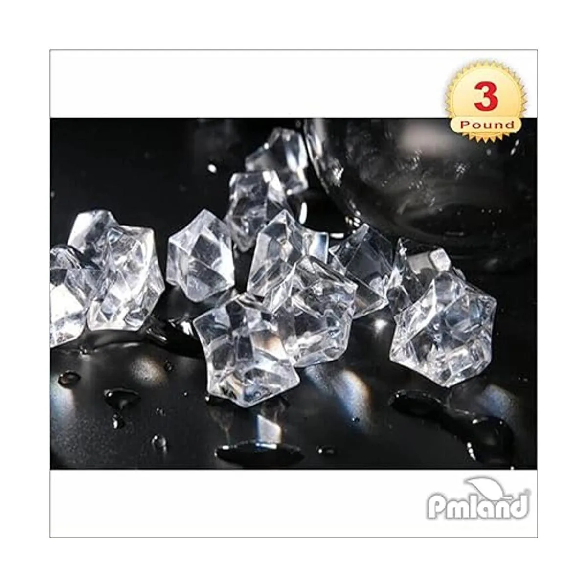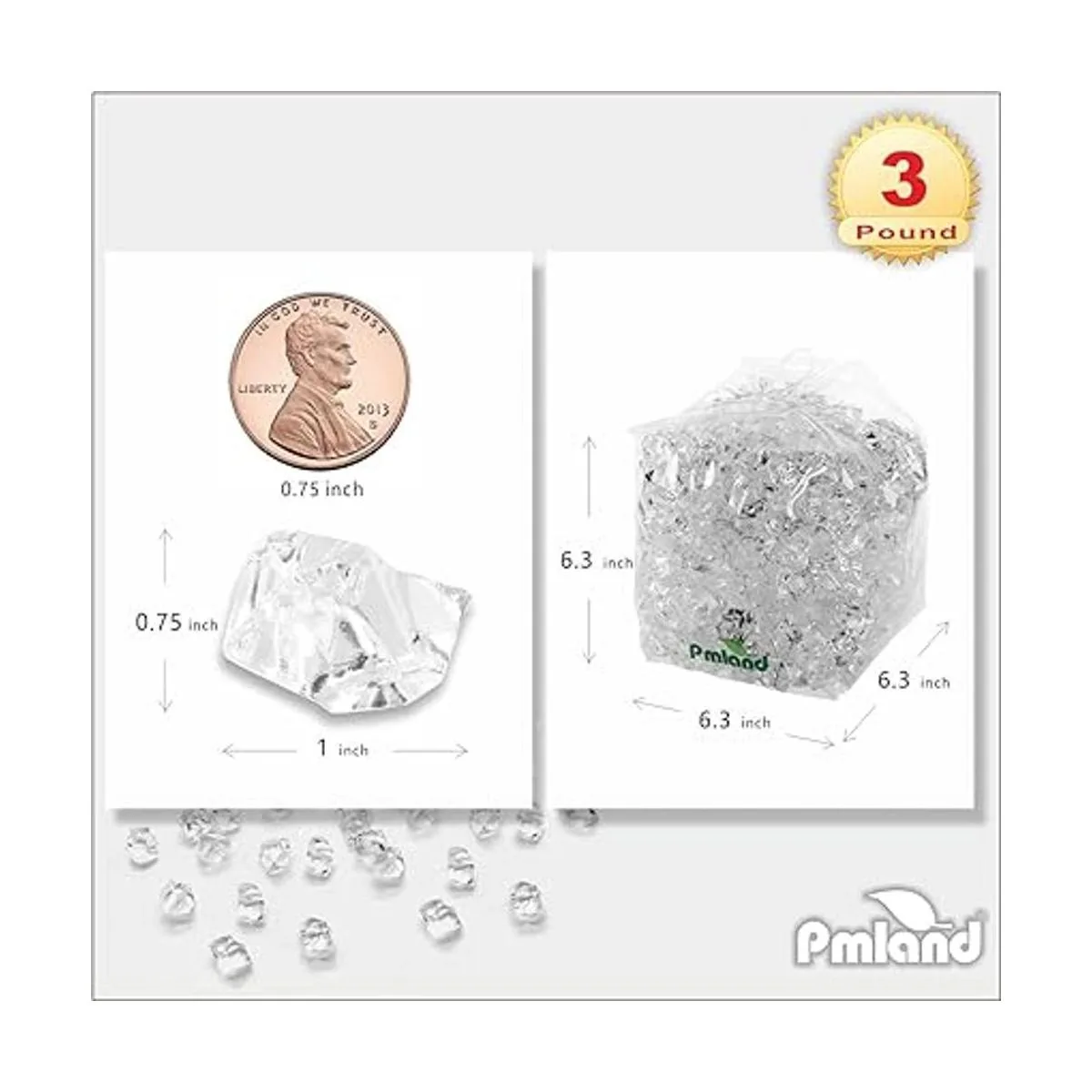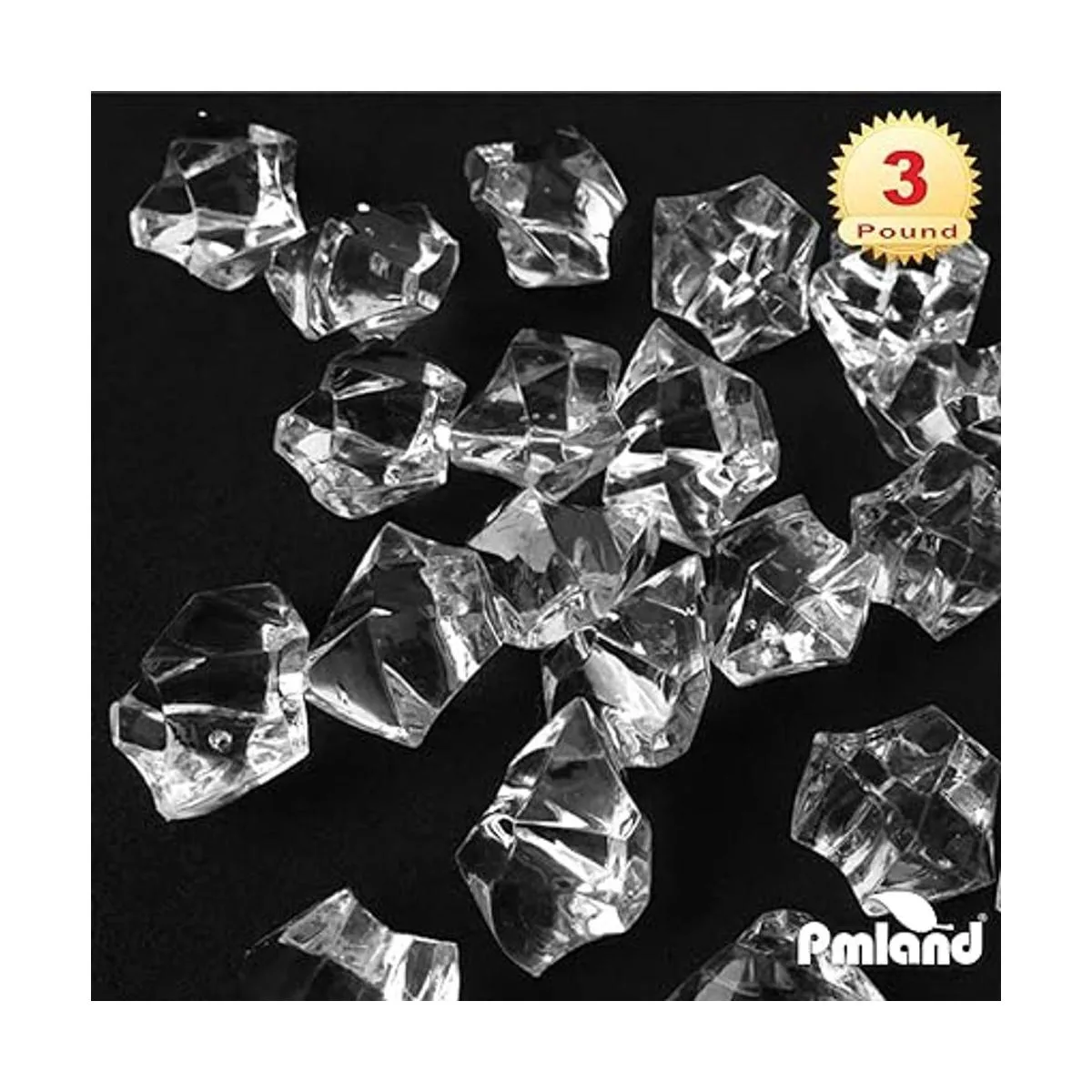 PMLAND Piedras de hielo acrílicas transparentes, gemas de cristales 1 pulgada de largo, bolsa a granel de 3 libras para llenar jarrones, mesa, fiesta, boda, arte, decoración, idea de exhibición