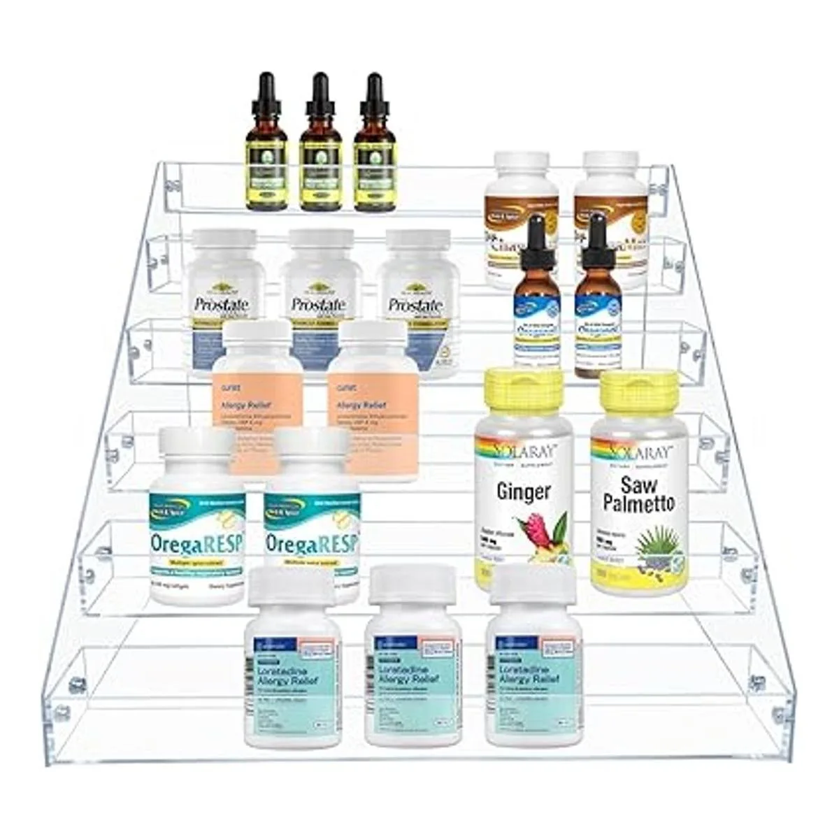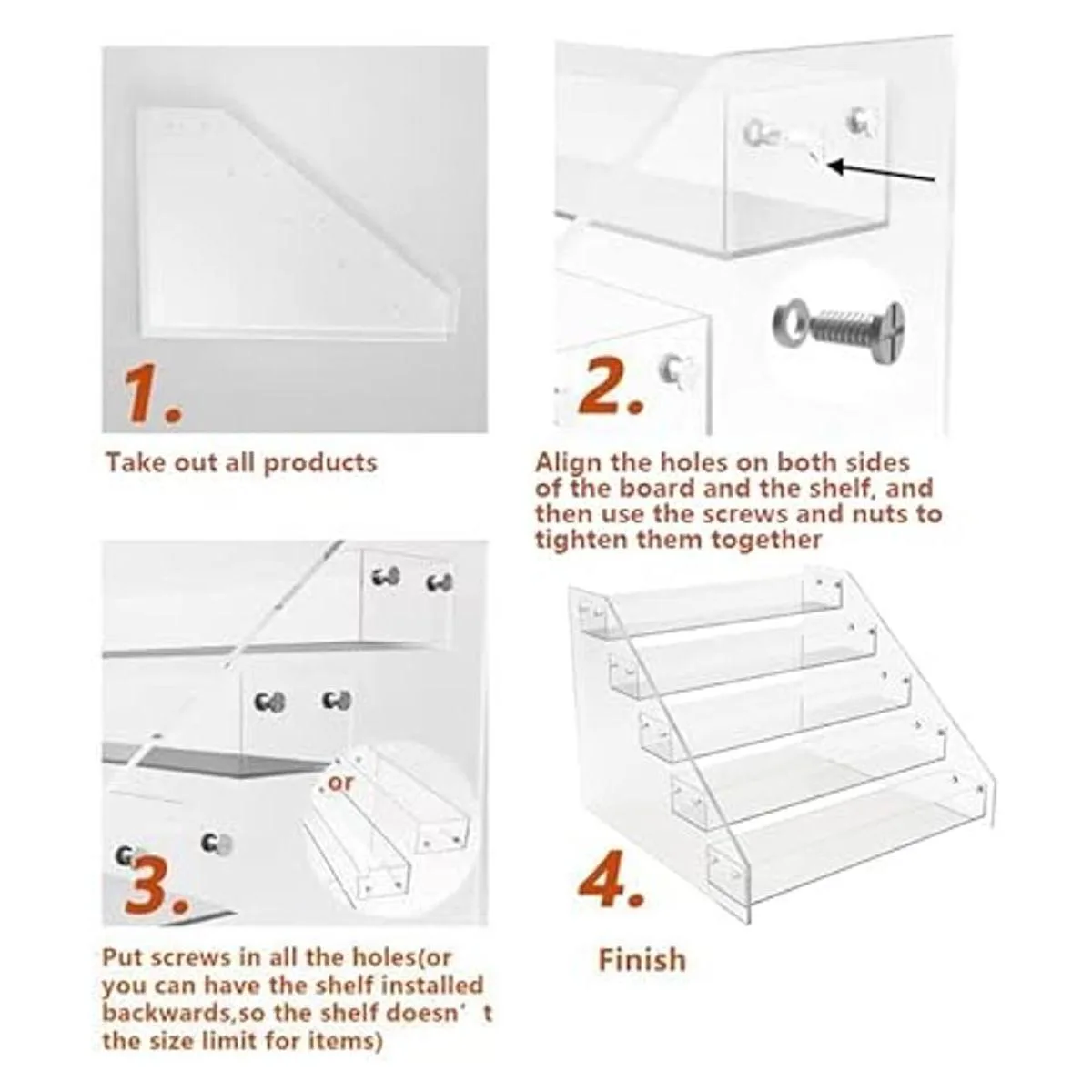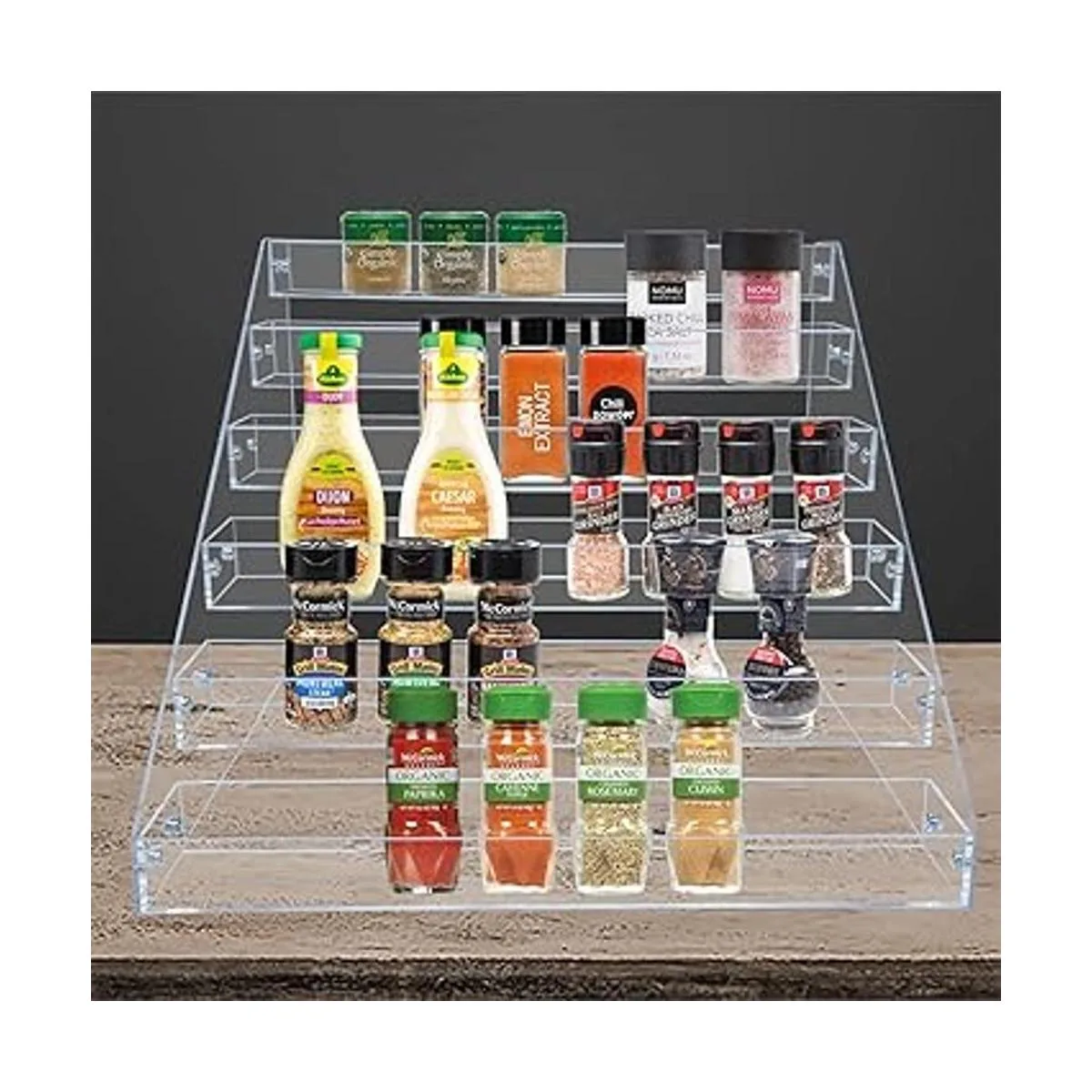 Múltiples funciones: los estantes de especias acrílicos escalonados te permiten localizar y obtener fácilmente los artículos que necesitas. Se puede utilizar para almacenar y organizar tarros de especias, salsas, botellas, botellas de medicamentos, etc. Los artículos están al alcance, e incluso se pueden utilizar fuera de la cocina. Organiza tu tocador, baño, armarios, etc. para maximizar el espacio de almacenamiento.