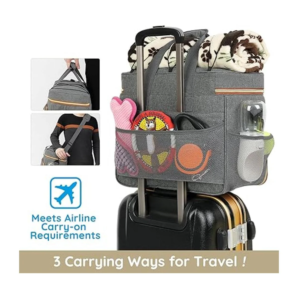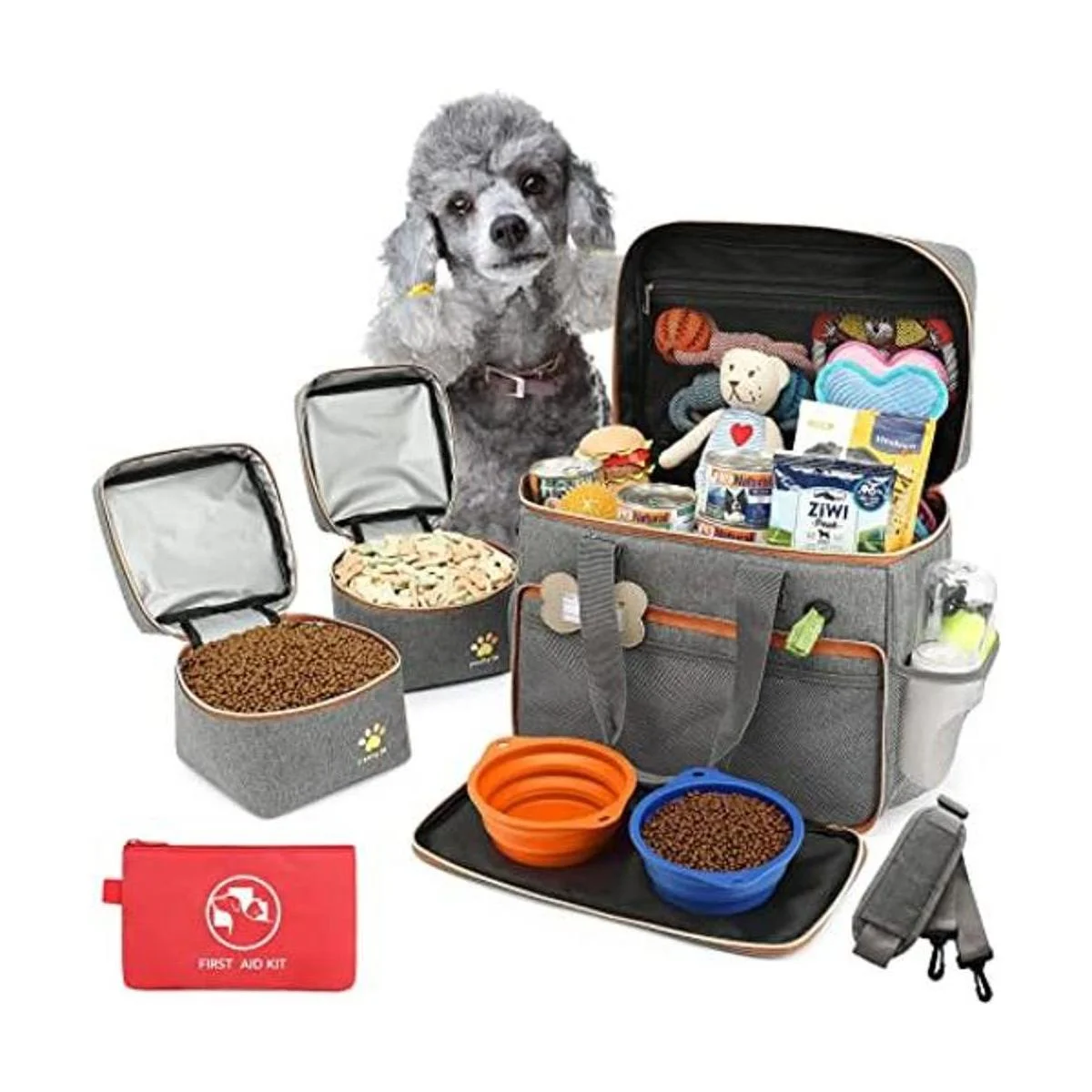 Pmpete Bolsa de viaje para perros, aprobada por aerolíneas, accesorios semanales, organizador de mano con bolsillos multifunción, juego de viaje para mascotas para perros y gatos, 2 cuencos plegables de viaje para perros