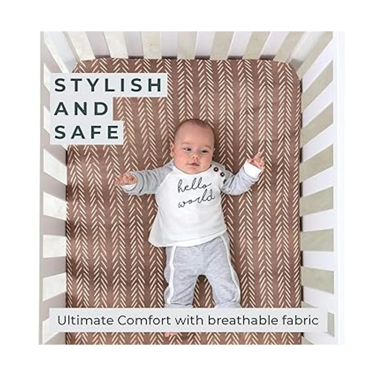 Suave, elegante y seguro: lo primero que notarás sobre nuestra ropa de cama de guardería de alta calidad es la tela lujosamente suave y transpirable. Te encantará la sensación y el ajuste mientras tiras de las sábanas cómodamente y te das cuenta de que la banda elástica envuelve todo el colchón, creando un espacio seguro y relajante para que tu bebé duerma.