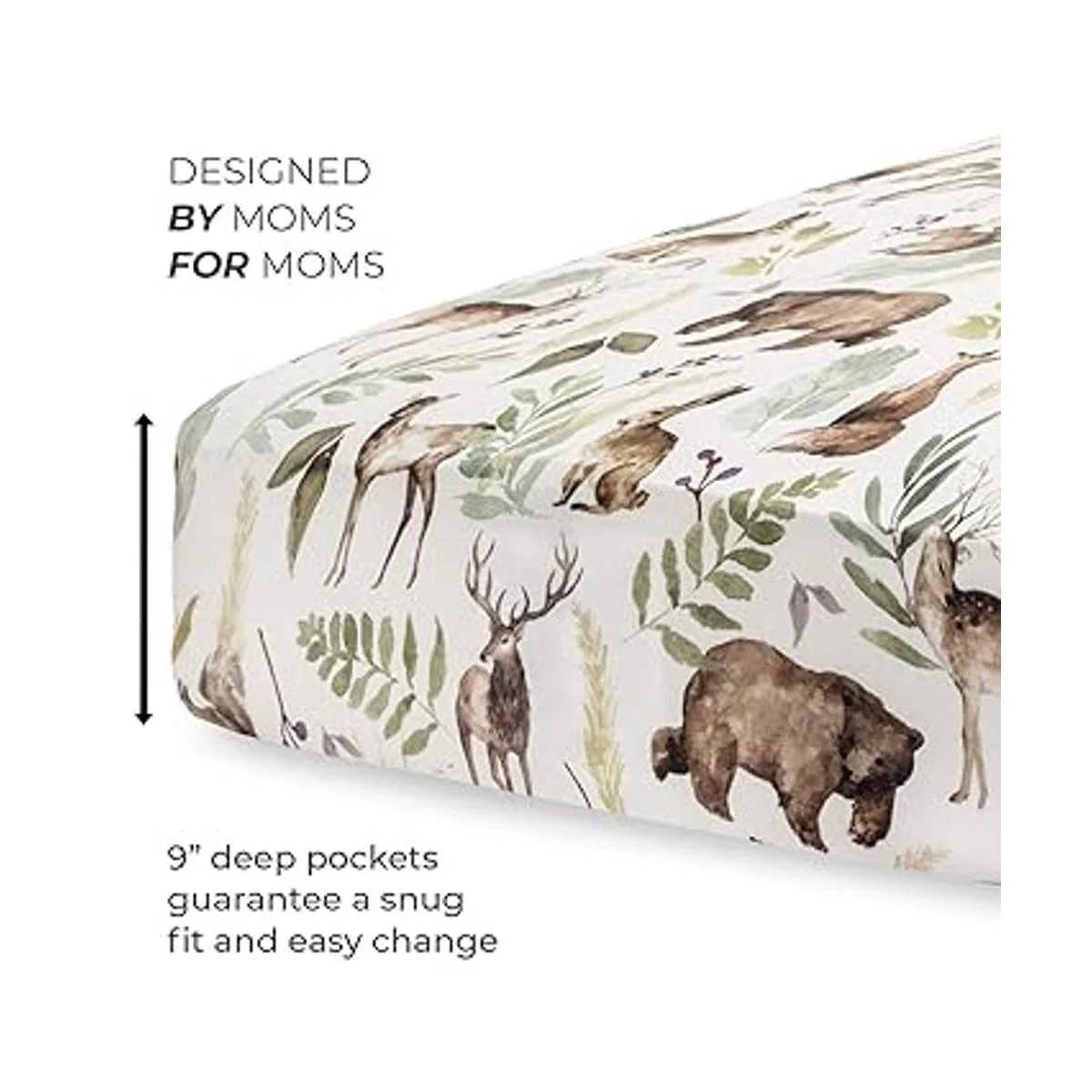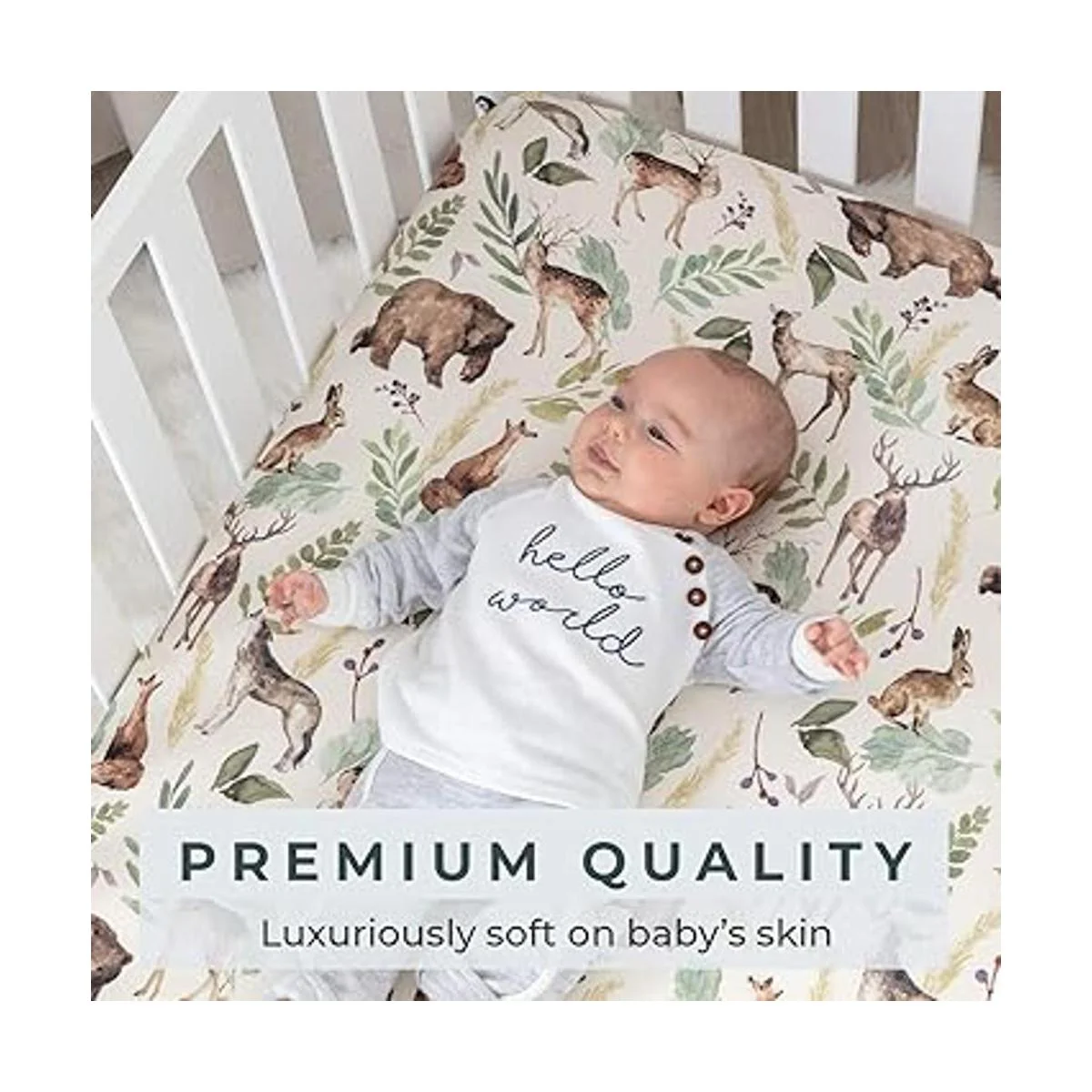 Hermosa larga vida útil: a diferencia de muchas otras sábanas para cuna, nuestra mezcla de alta calidad de 95 algodón y 5 elastano no se pela ni pierde sus colores vibrantes con el tiempo. Esta ropa de cama para cuna está diseñada para durar Llena tu mundo de belleza mezclando y combinando con otros accesorios de ropa de cama de guardería del bosque de Pobi Baby: sábanas de cuna, sábanas de cuna portátiles, fundas de cambiador y fundas de asiento de coche multiusos y fundas de lactancia.