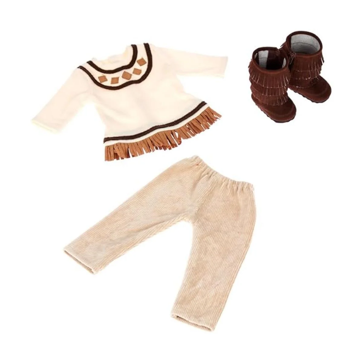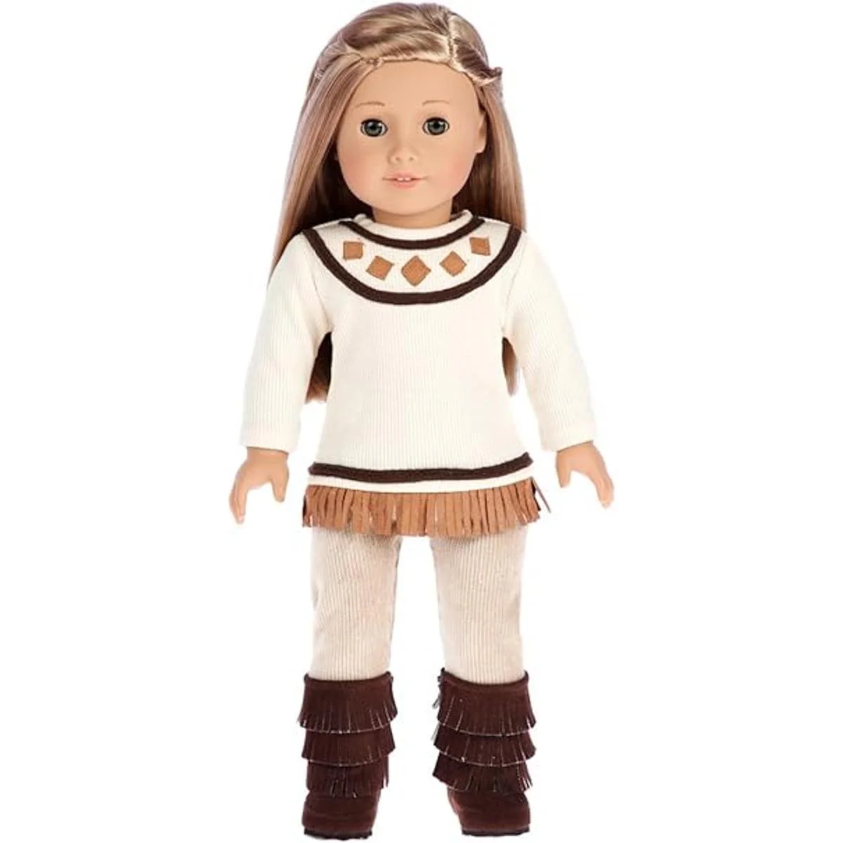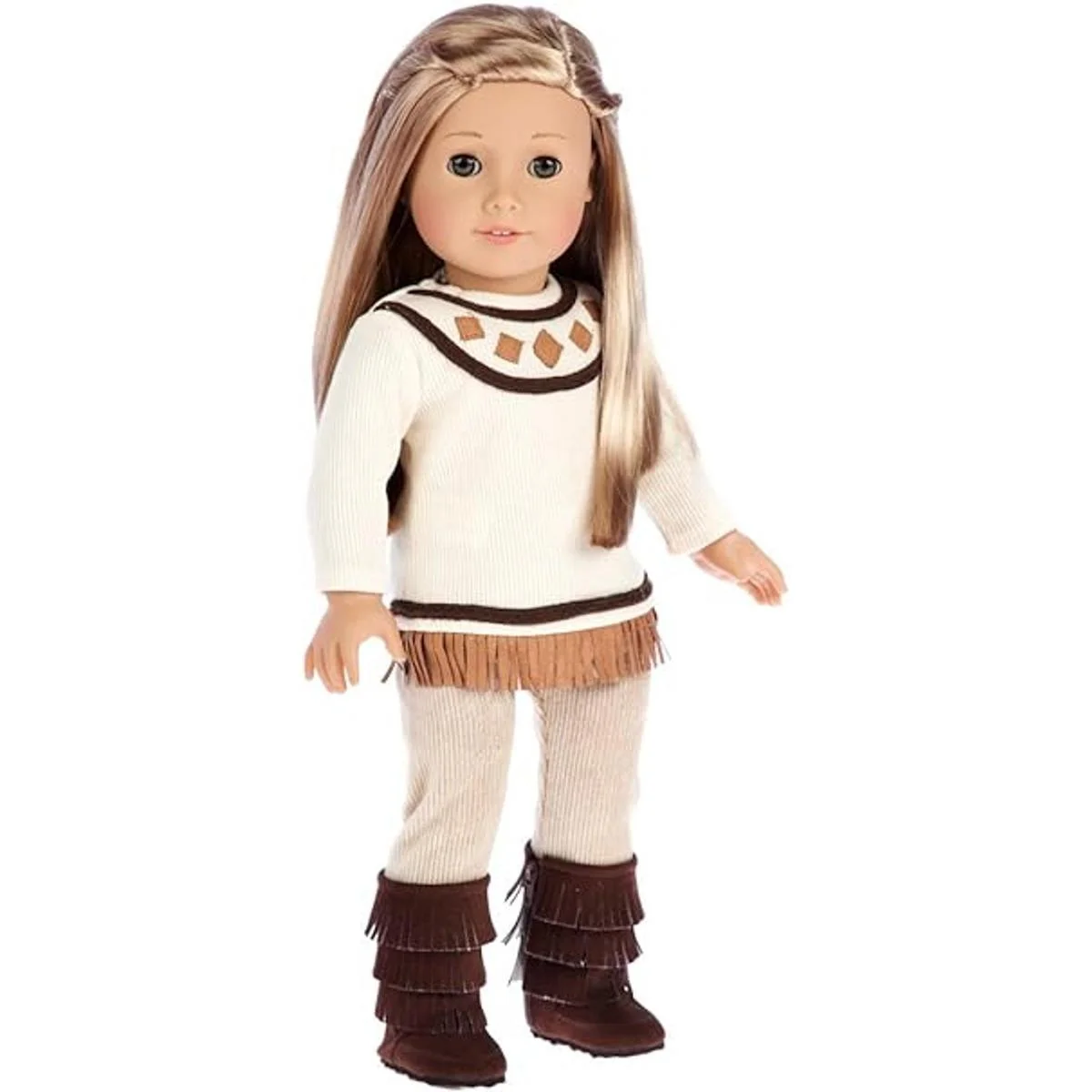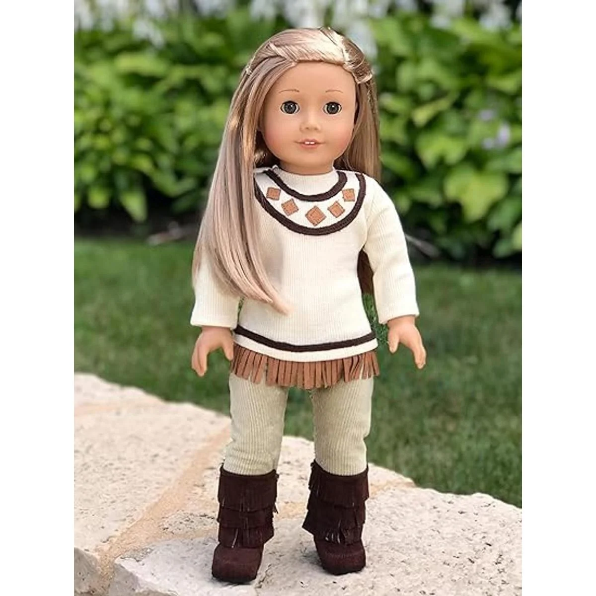 Pocahontas Traje de 3 piezas Ropa para muñecas americanas de 18 pulgadas Túnica marfil, leggings y botas marrones Muñeca no incluida