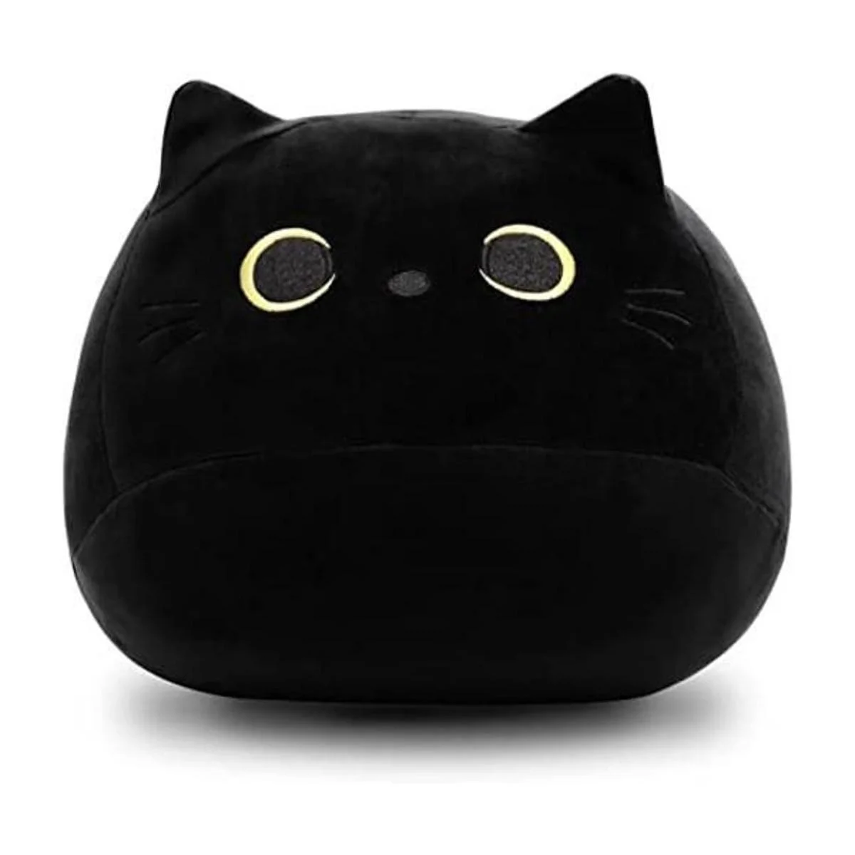 Pochita Almohada de peluche de gato negro 3D, peluche de gato negro gordo de peluche de gato negro, almohadas kawaii, almohada de gato kawaii, diseño en forma de gato kawaii decoración de espalda lumbar