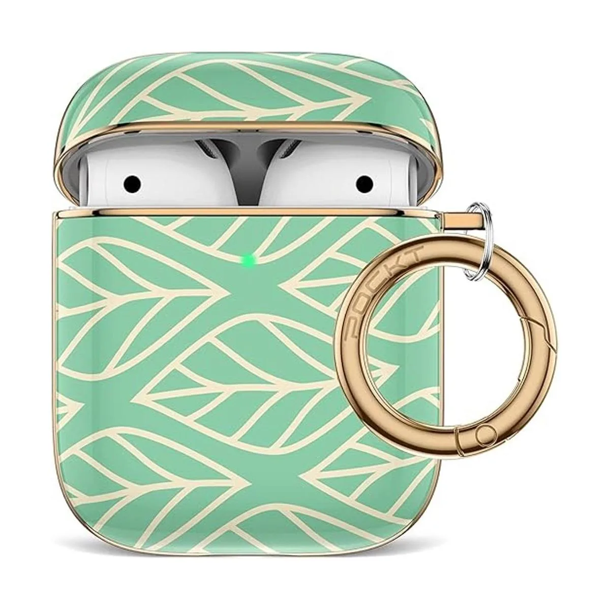 POCKT Funda para AirPods con llavero, funda rígida para AirPods de carga Hojas