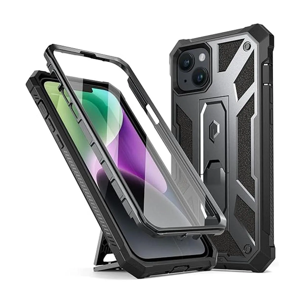 Poetic Funda compatible con iPhone 14, funda Spartan para iPhone 14 con protector de pantalla, funda protectora de cuerpo completo resistente a prueba de golpes con soporte, metal metálico