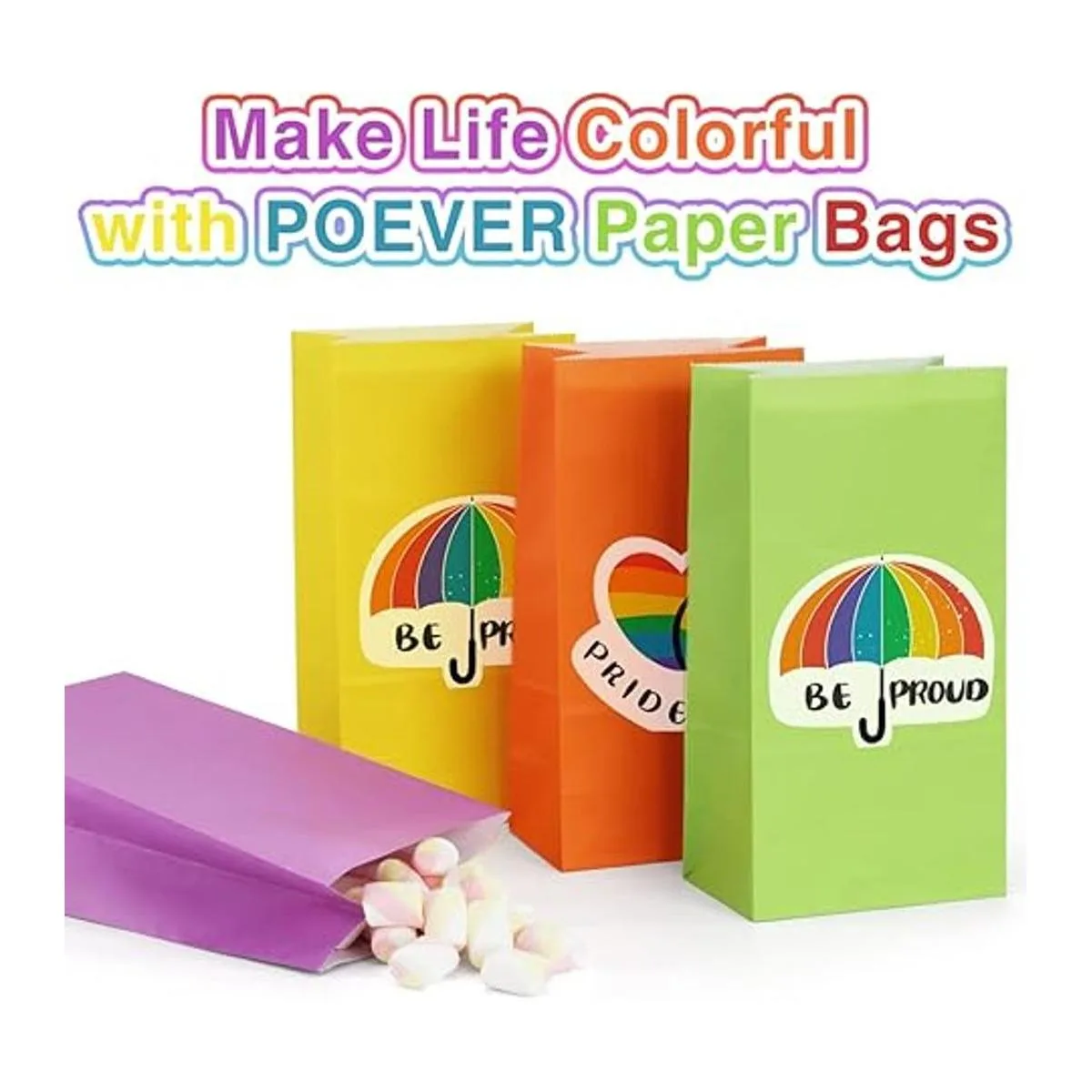 Bolsas Kraft reciclables: las bolsas de papel arcoíris POEVER están hechas de papel 100 reciclable, por lo que son ecológicas y reutilizables, saludables tanto para ti como para el medio ambiente. Con la construcción sólida, estas coloridas bolsas de golosinas pueden soportar hasta 4 libras firmemente.