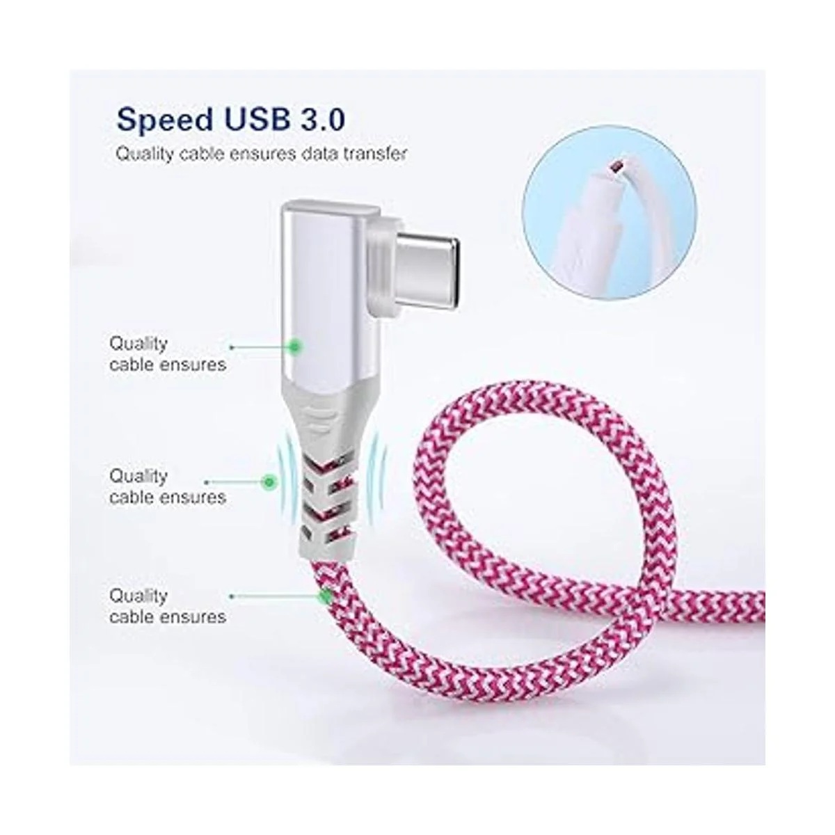 Pofesun Cable USB C 5 unidades, 10 pies, cable USB tipo C trenzado de ángulo recto, cable de carga rápido USB C compatible con Samsung Galaxy S22Ultra S21 S20 S10 S9 S8 Plus Note 20 10 9 8, Moto G7 G8