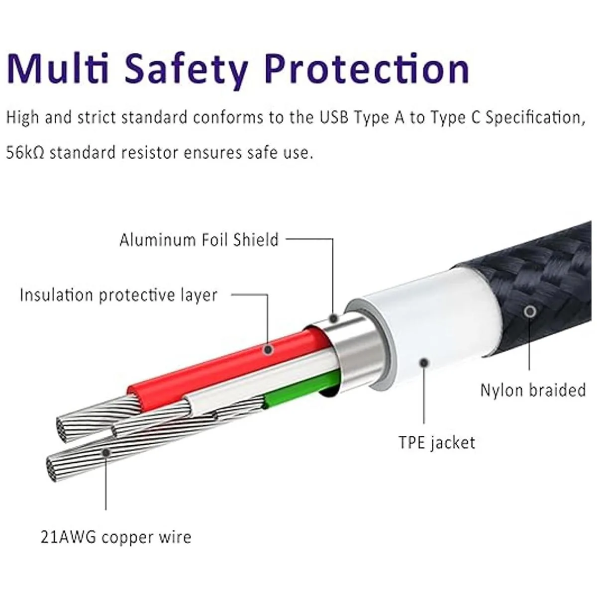 Carga y transferencia más rápidas: el material de alta calidad puede garantizar que los cables USB C se carguen a alta velocidad y transmitir datos, vídeo, música, archivos al mismo tiempo. Carga tus dispositivos tipo C hasta un 8 más rápido que los cables estándar y transfiere datos a 480 Mbps. Cumple con la especificación USB tipo C versión 1.1, 56 kilohm, identificación estándar, lo que garantiza una carga segura a 2.4 A máximo.
