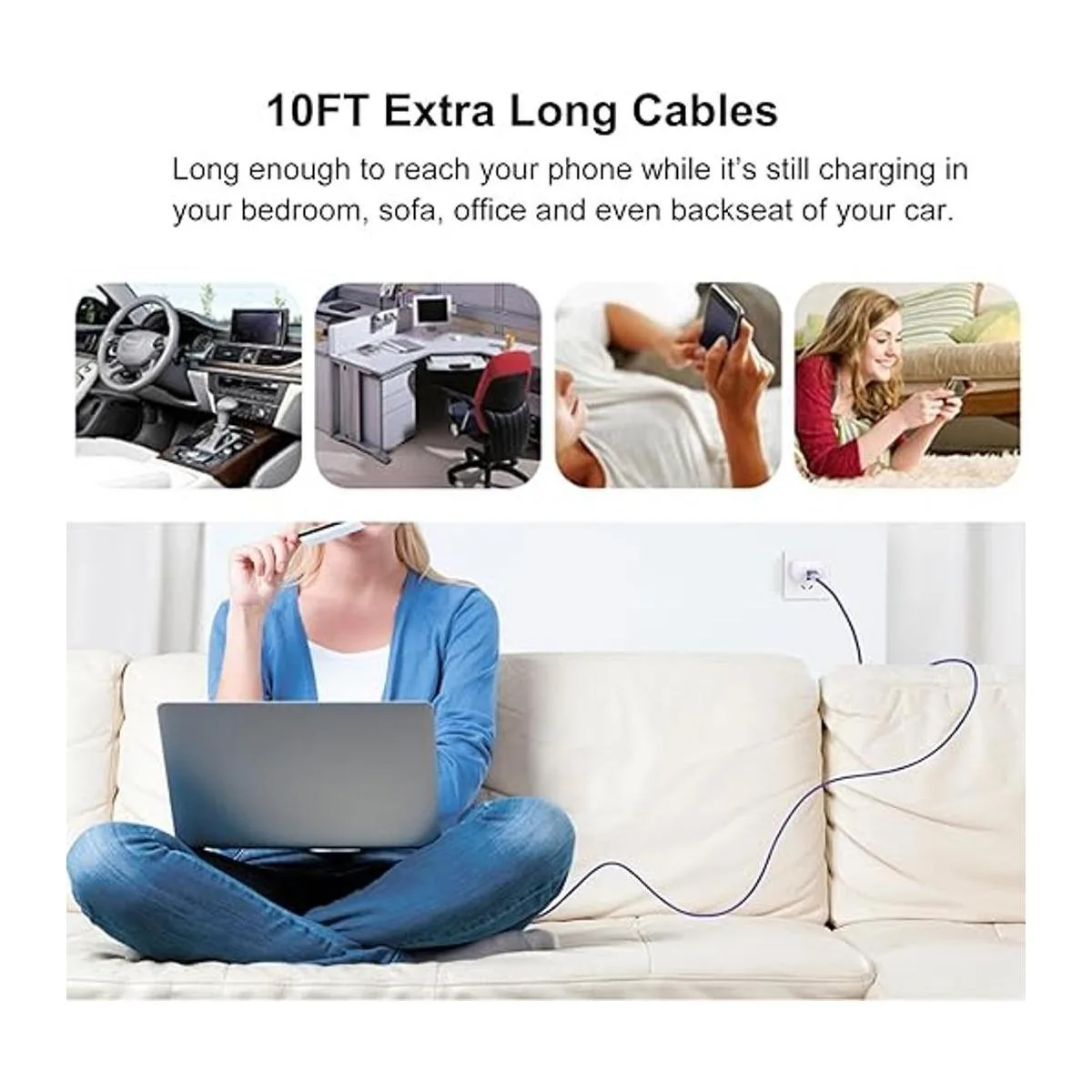 Longitud extra larga de 10 pies: el cable USB C perfecto de 10 pies mantiene tus dispositivos conectados a una distancia mucho mayor, reemplaza tu cable original y te permite ser libre de usar en el sofá, dormitorio, oficina, banco de energía, coche, etc. Puedes acostarte en el sofá para sentirte cómodo y utilizar tus dispositivos mientras se carga. Nunca te preocupes por no tener suficiente alcance de tu cable de carga USB.