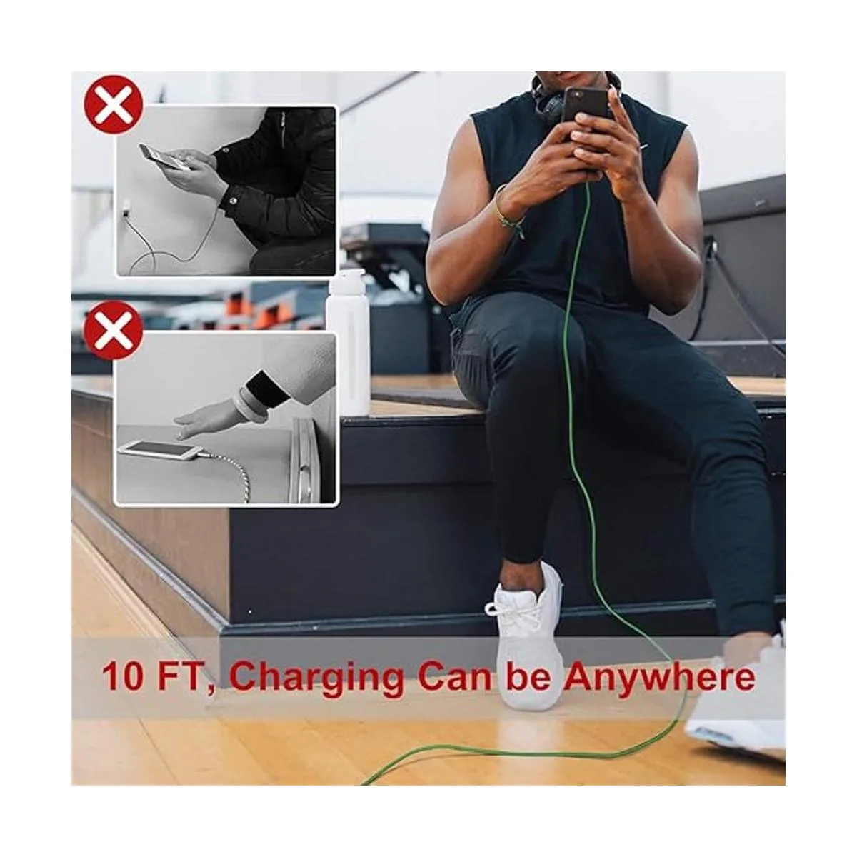 10 pies y diseño fácil de usar : 10 pies es ideal para cargar en cualquier lugar, nunca te preocupes por no tener suficiente alcance de tu cable de carga USB. Reemplaza tu cable original y sé libre de usar en el sofá, dormitorio, oficina, banco de energía, coche, etc. El conector reversible te permite insertar fácilmente en cualquier dispositivo habilitado para tipo C sin preocuparte por los lados.