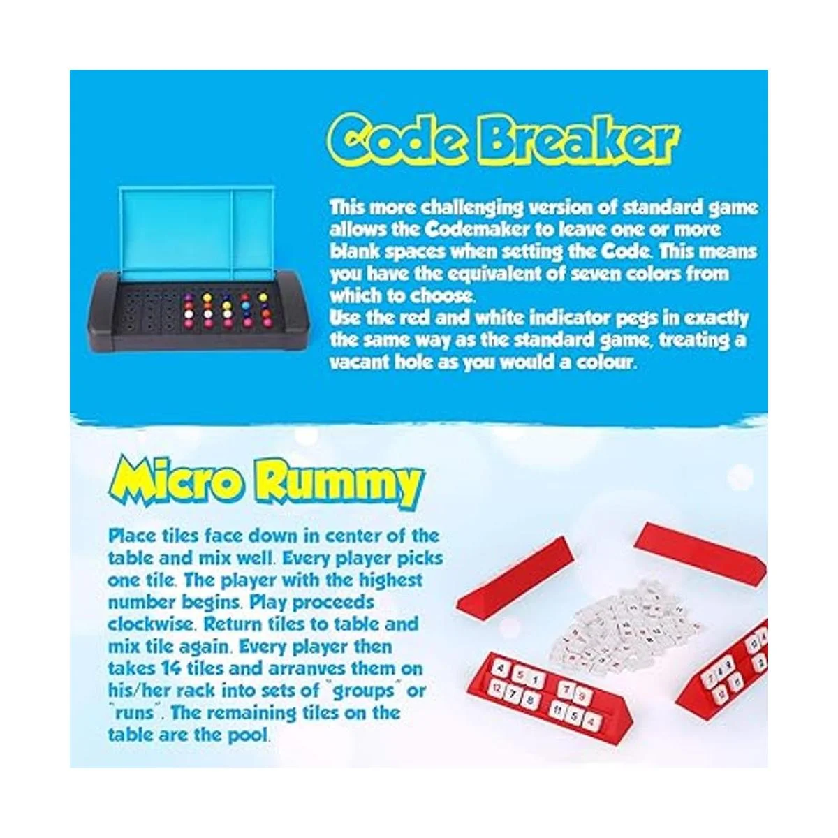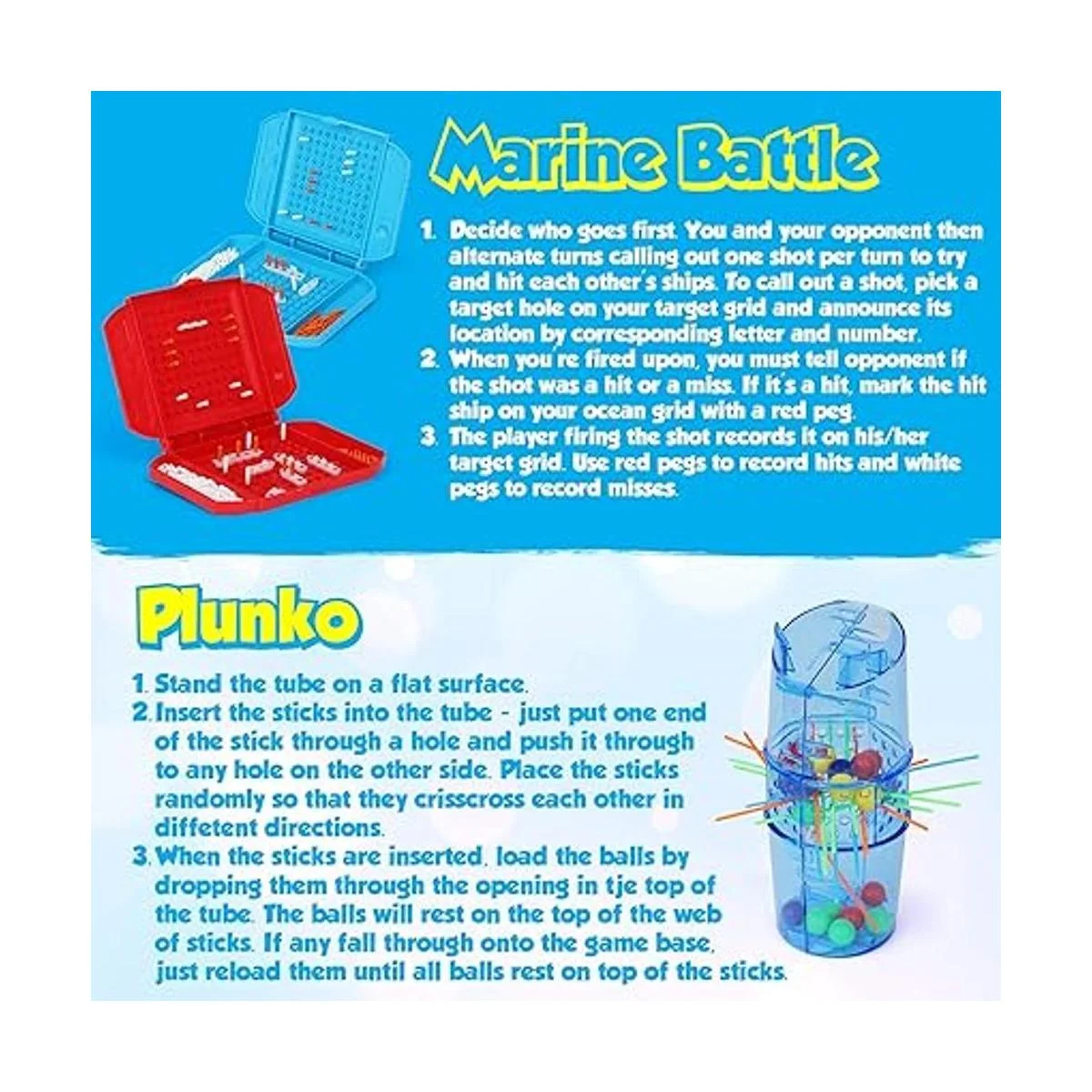 Qué incluye: cuatro divertidos juegos de viaje para edades de 7 años en adelante incluyen; Plunko, Marine Battle, Code Breaker y Micro Rummy. Es un gran regalo para niños, sorprende a los niños en su cumpleaños, vacaciones o cualquier otro evento encomiable.
