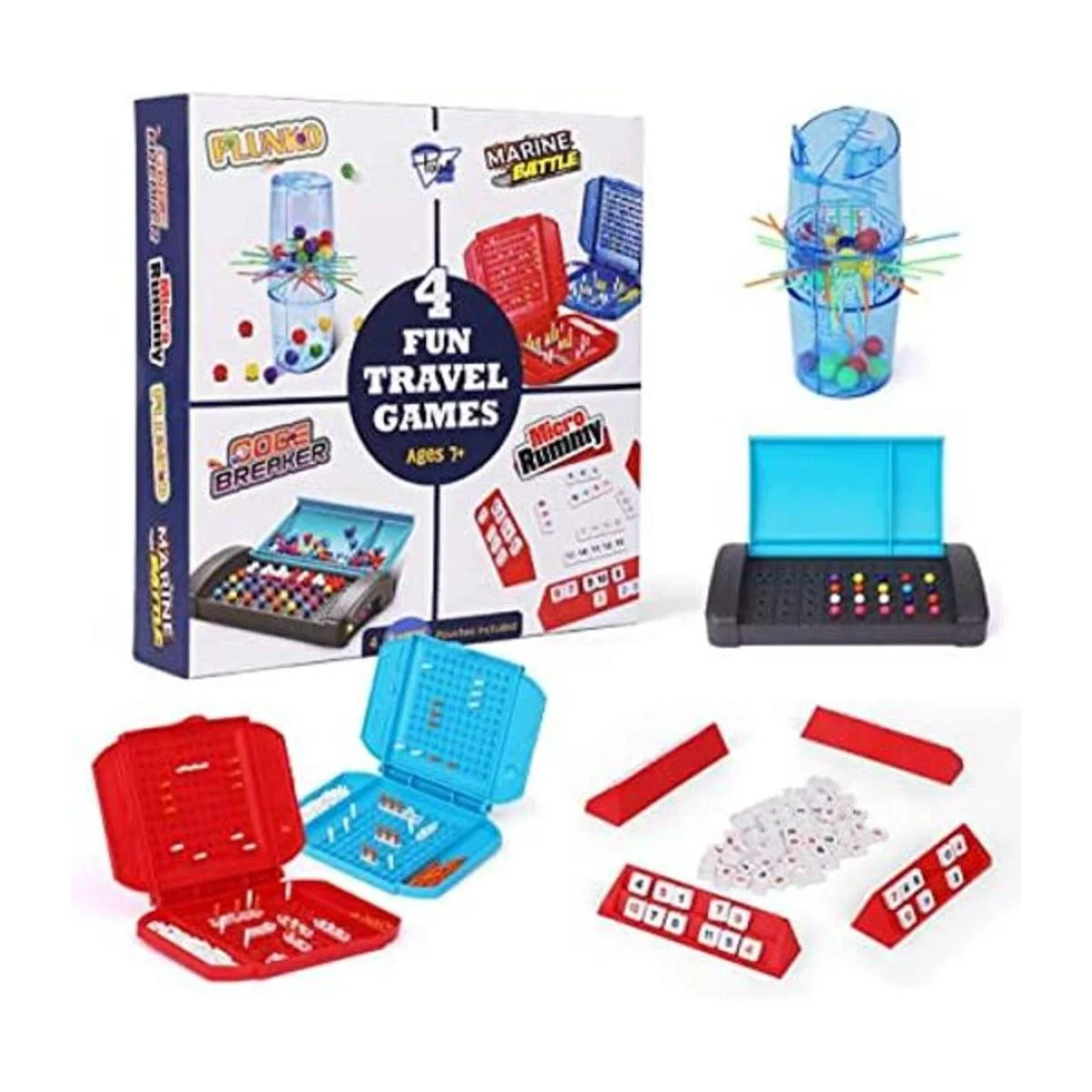Point Games Juego de 4 divertidos juegos de viaje Surtido de juegos de mesa en una caja Mejora la coordinación ojo y mano y estimula la estrategia y el pensamiento crítico Fácil almacenamiento y fácil de viajar, juego de mesa a partir de 7 años