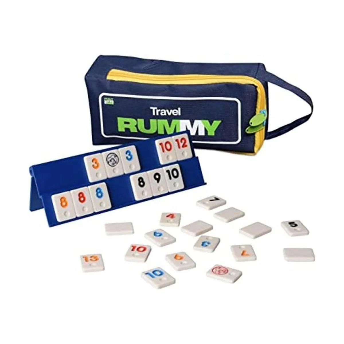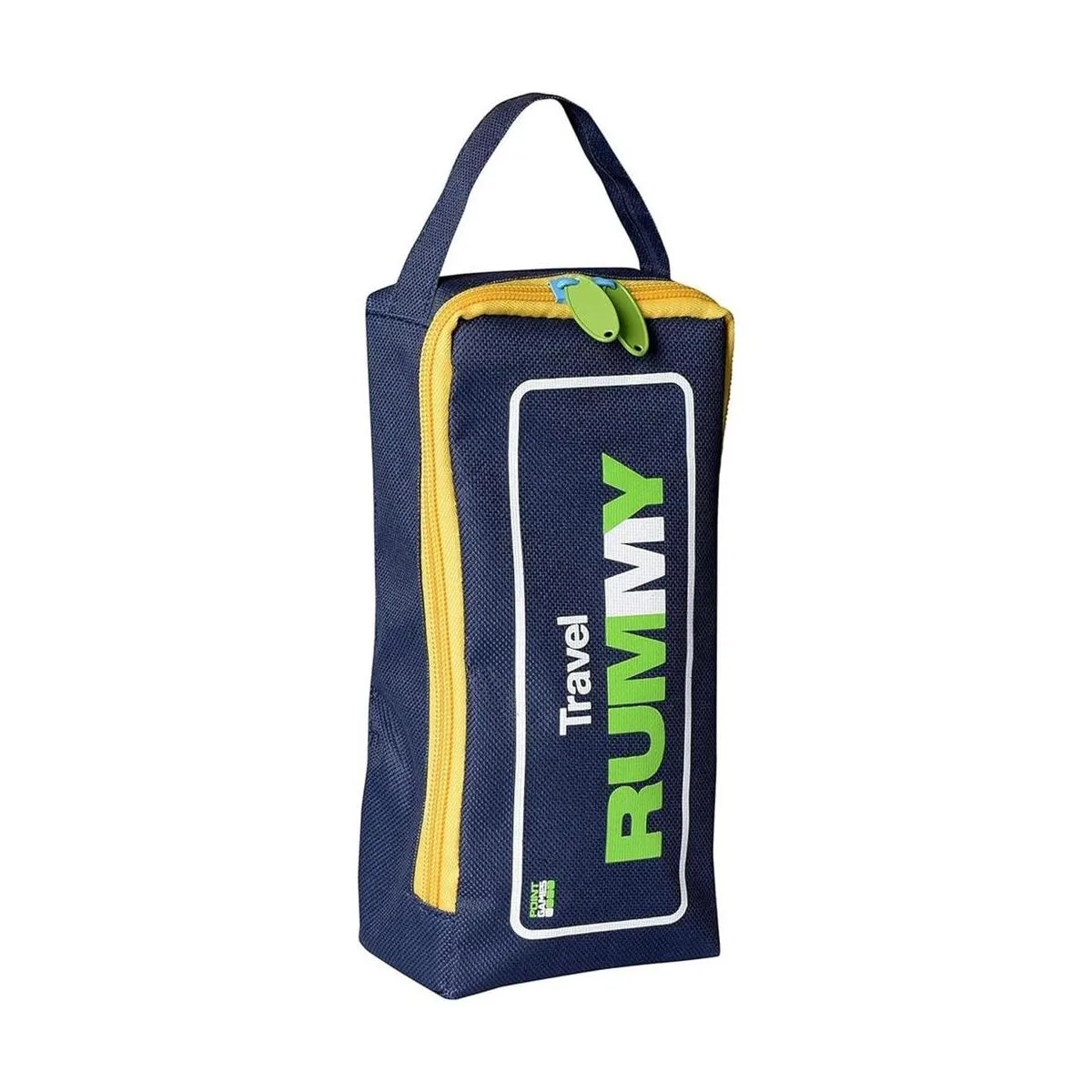 Listo para jugar: el mini juego de rummy de viaje de Point Games incluye 106 azulejos de alta calidad, cuatro estantes de juego exclusivos de 2 niveles, bolsa de tela con cremallera para almacenamiento y viajes y reglas actualizadas e instrucciones idioma español no garantizado
