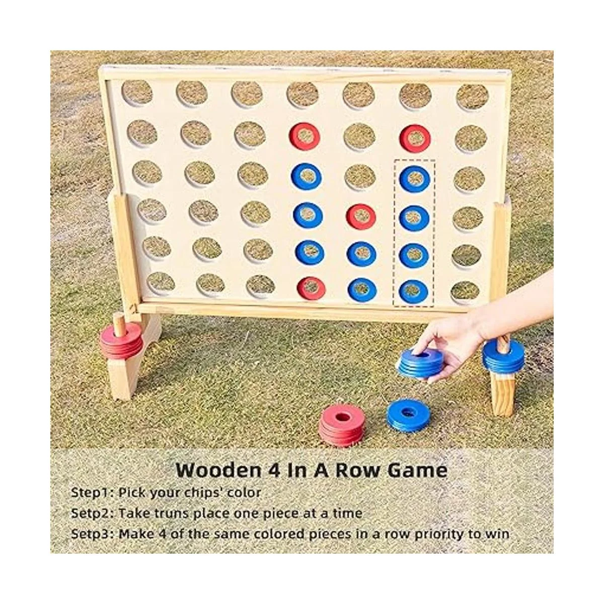 Pointyard Juego gigante de madera 4 en una fila, juego grande de 26 pulgadas de ancho, juego de 4 juegos para exteriores e interiores con monedas y bolsa de transporte, juegos de mesa de viaje para adolescentes y adultos familiares