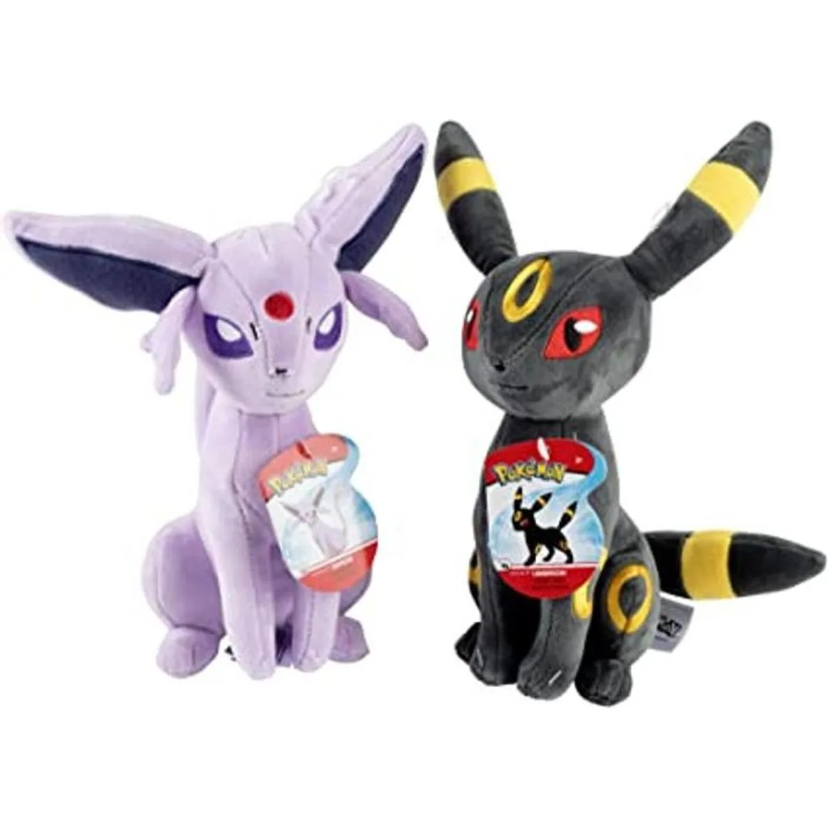 Pokemon Espeon and Umbreon Peluche de 8 pulgadas, juguete de peluche con licencia oficial, paquete de 2 unidades, a partir de 2 años