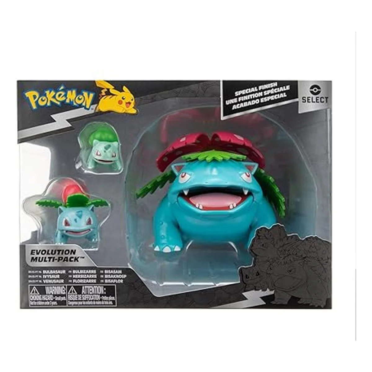 Tres figuras: el paquete incluye Bulbasaur, 3 pulgadas Ivysaur, 12 pulgadas y Venusaur.