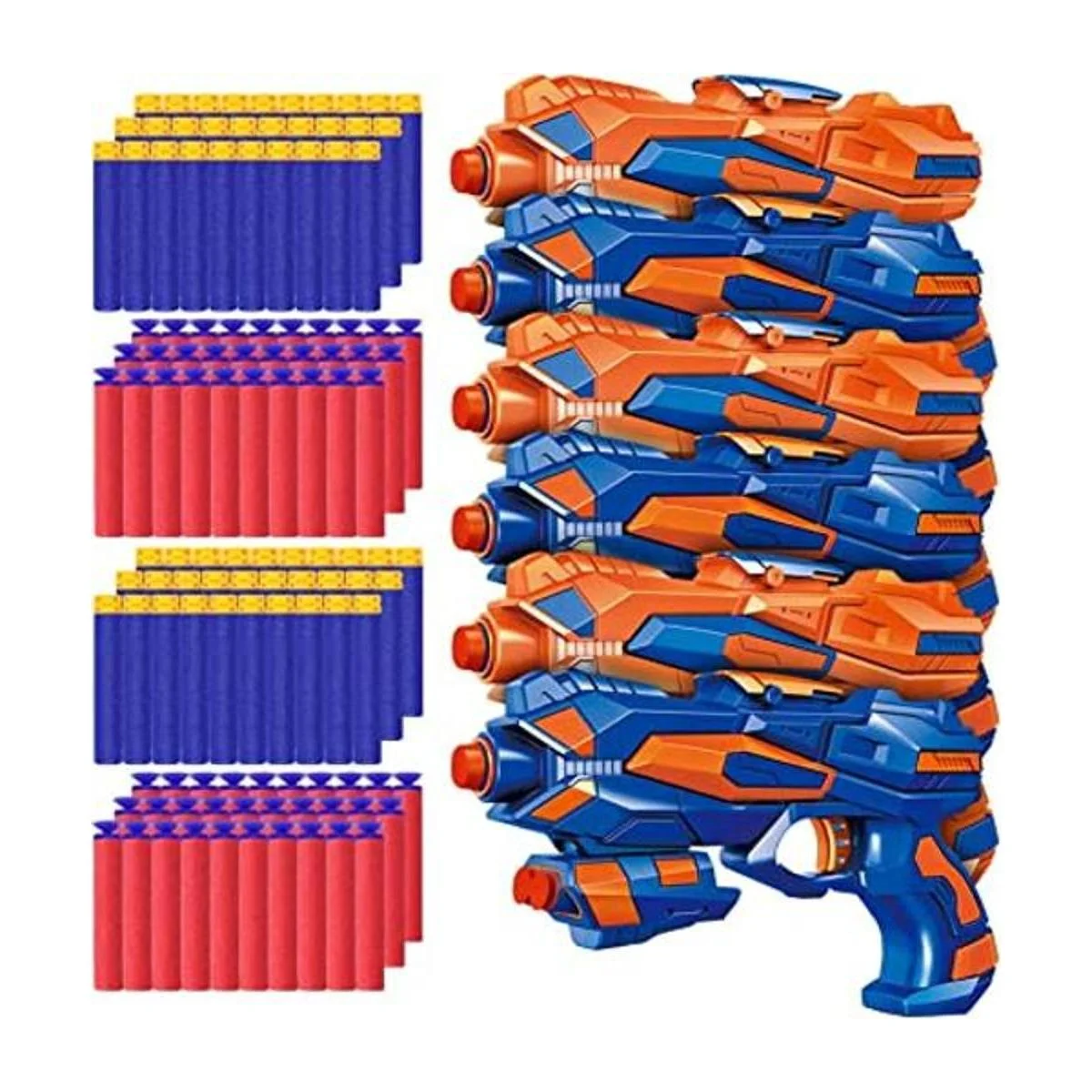POKONBOY Paquete de 6 pistolas de juguete para niños aptas para balas Nerf, pistolas de juguete con 120 dardos de espuma de repuesto para niños y niñas, regalos de cumpleaños, recuerdos de fiesta, juguetes de pistola de mano para niños de 6 años