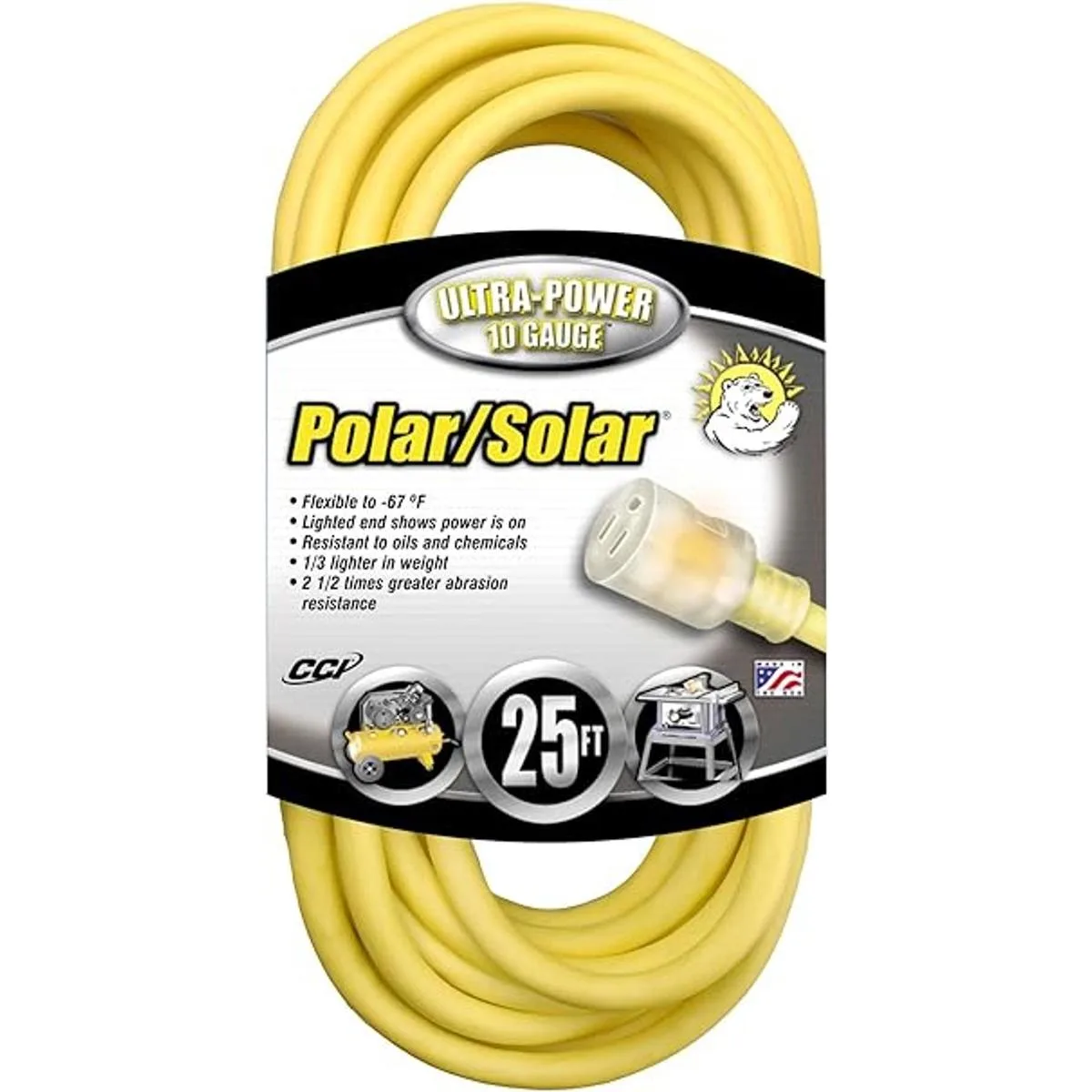 PolarSolar 1787 103 15 amperios SJEO Cable de extensión para exteriores con extremo iluminado, 25 pies