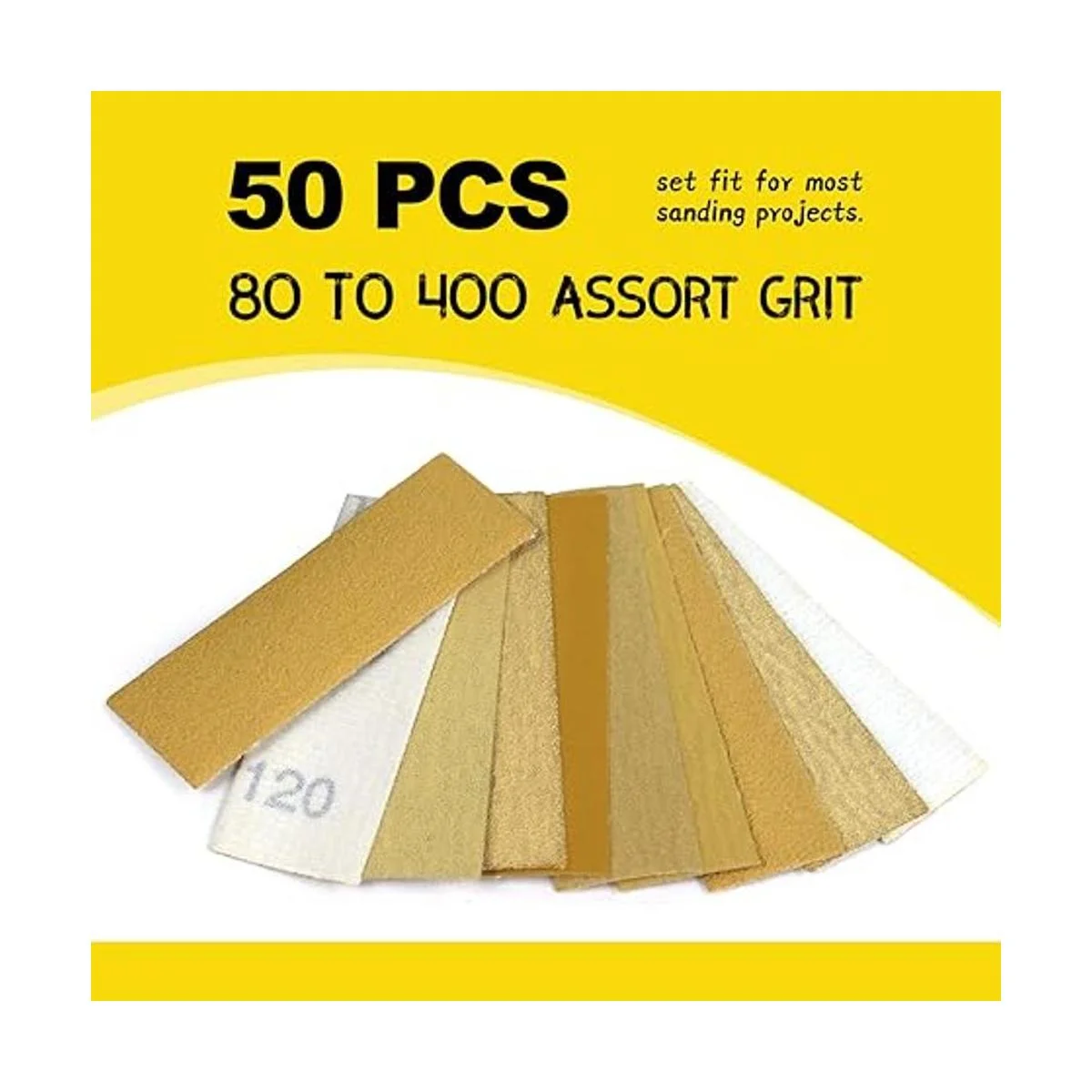 5 granos diferentes: Papel de lija hecho de óxido de aluminio de alto rendimiento y de grano 80, 120, 180, 240 y 400, lija de grano extra grueso a muy fino, para lijado fuerte, pulido medio y acabado suave. En el respaldo del papel de lija está marcado el grano para distinguirlo fácilmente
