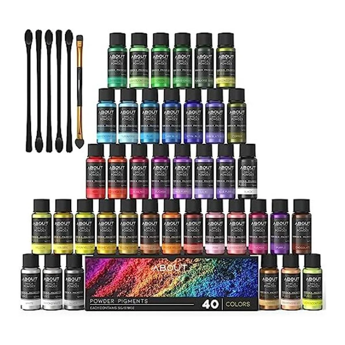 Polvo de mica, pigmento de purpurina de 40 colores para resina epoxi, suministros de fabricación de jabón, brillo de labios, tinte para hacer velas, bomba de baño, uñas y manualidades, pigmento de color de resina de grado cosmético de 0.18 oztarro