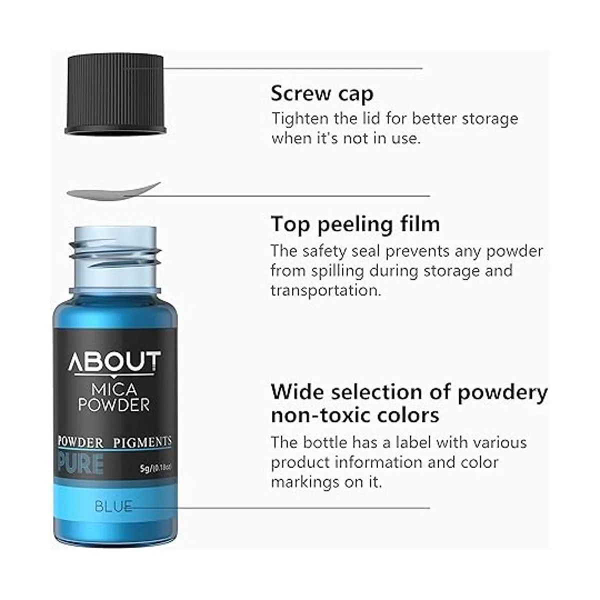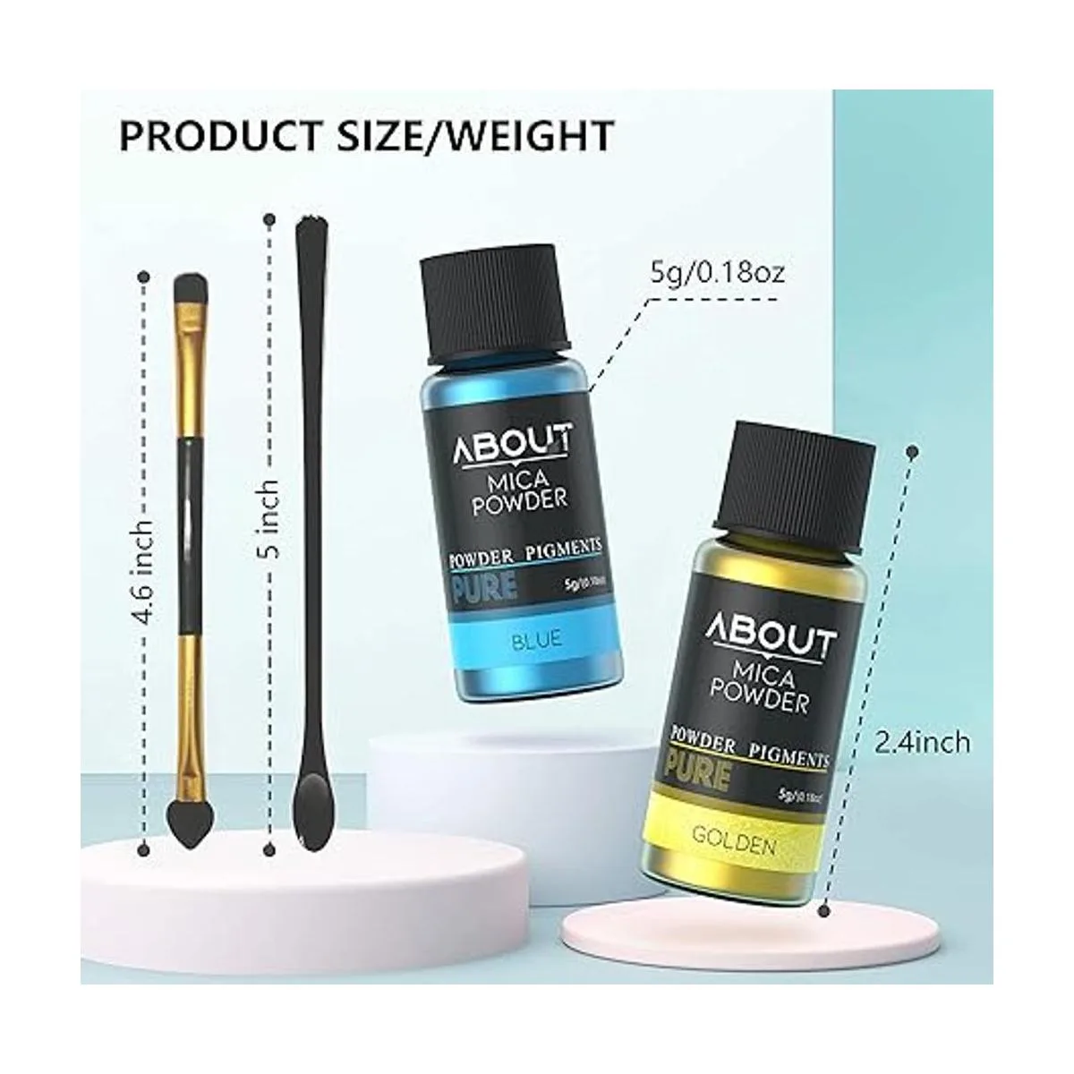 Fácil de usar: nuestro polvo de mica es fino, 1060 micras de pigmentos de partículas muy finas, un poco de pigmento concentrado puede tener un buen efecto de uso, y es fácil de mezclar con otros medios resina epoxi, base de brillo de labios, jabón, no deja pasta ni grumos de pintura