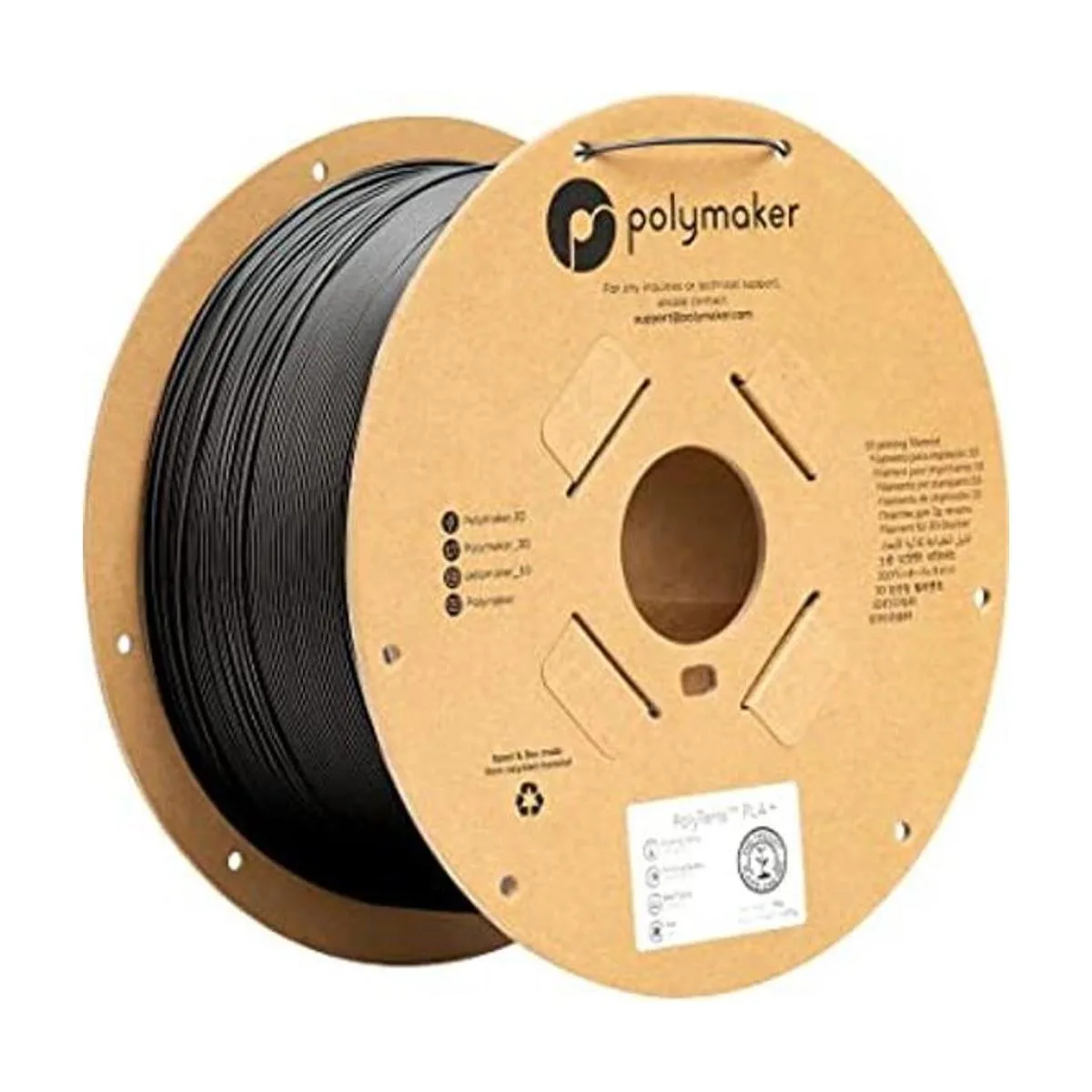 Polymaker Filamento PLA para impresora 3D de 0.75 pulgadas PLA Plus filamento negro, filamento PLA satinado de 0.8 libras, carrete de cartón de 1.75 pulgadas, PLA resistente PolyTerra filamento de impresora 3D color negro