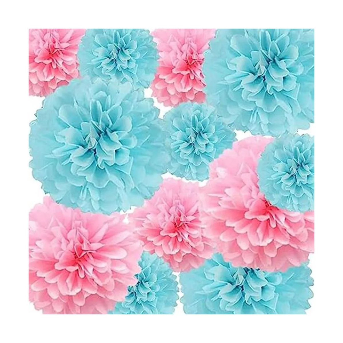 12 unidades. Paquete: cada juego viene con 12 pompones de papel, pompones de papel rosa: 12 x 2, 10 x 2.8 x 2, azul12 x 2, 10 x 2, 8 x 2