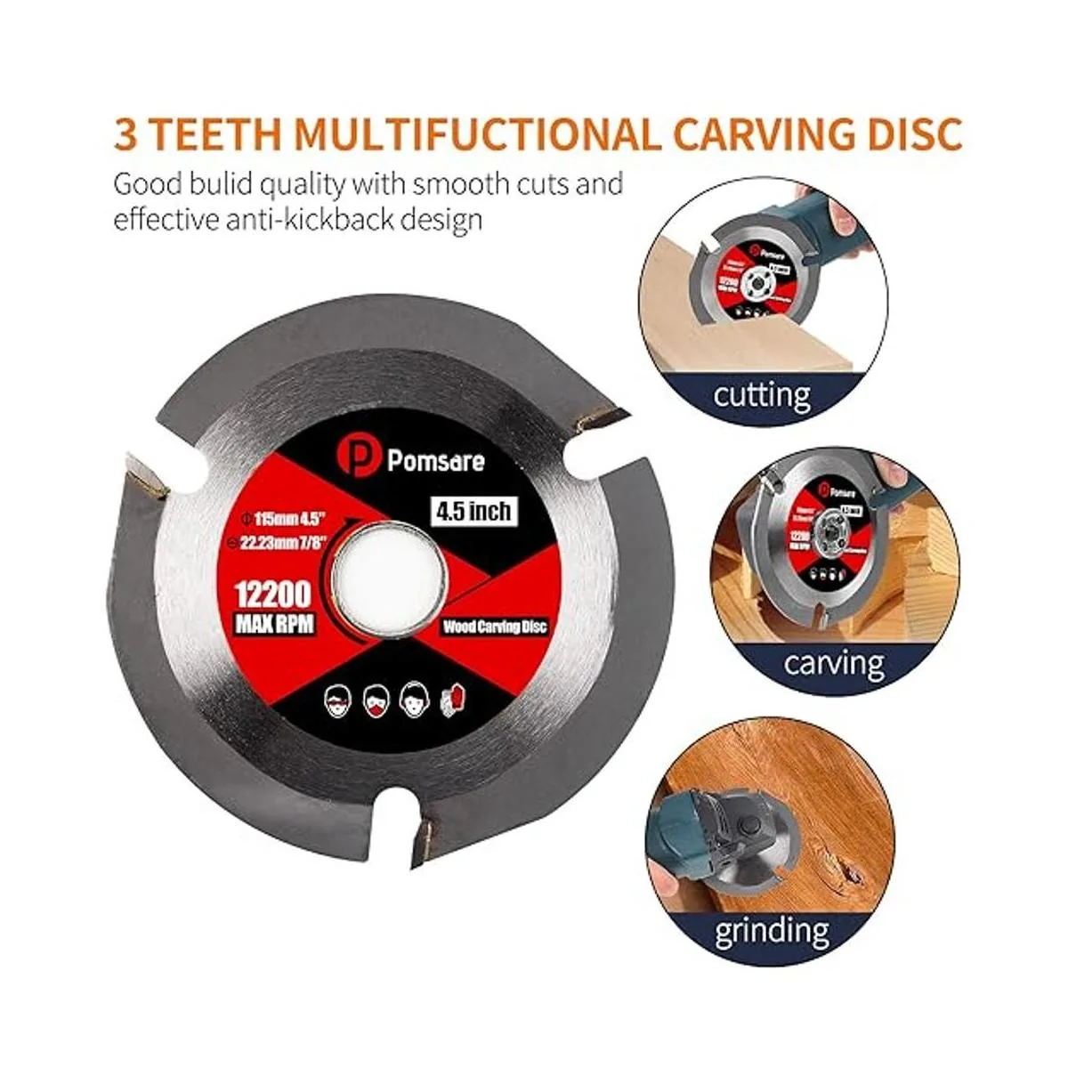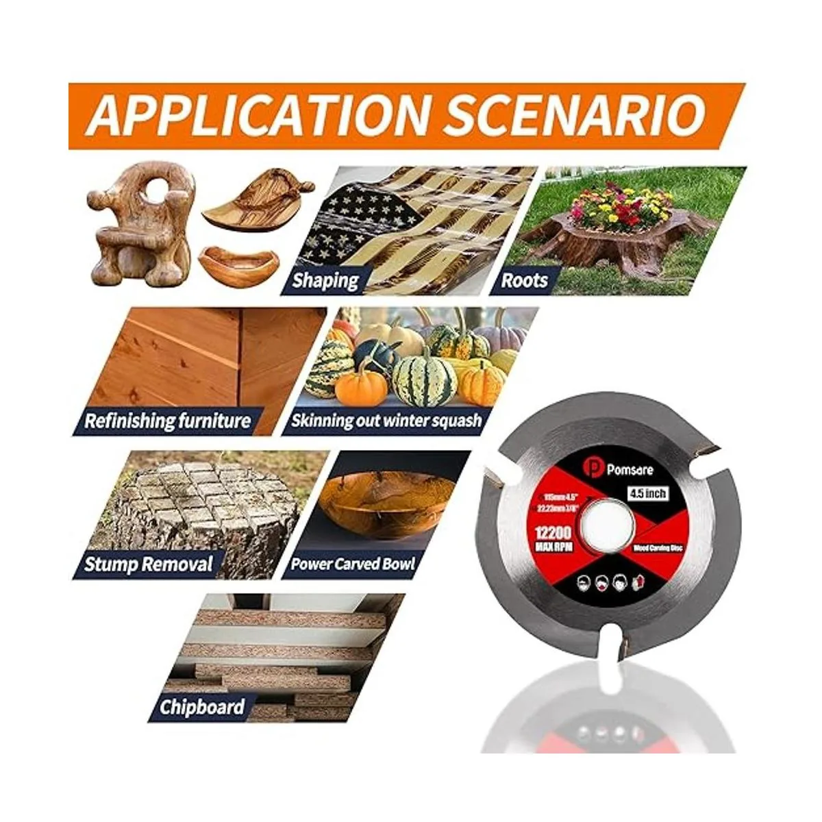 Pomsare Amoladora angular, disco de tallado de madera, accesorios para rueda de corte de madera, moldeador de madera para amoladora angular de 4 12 pulgadas con cenador 58 y 78