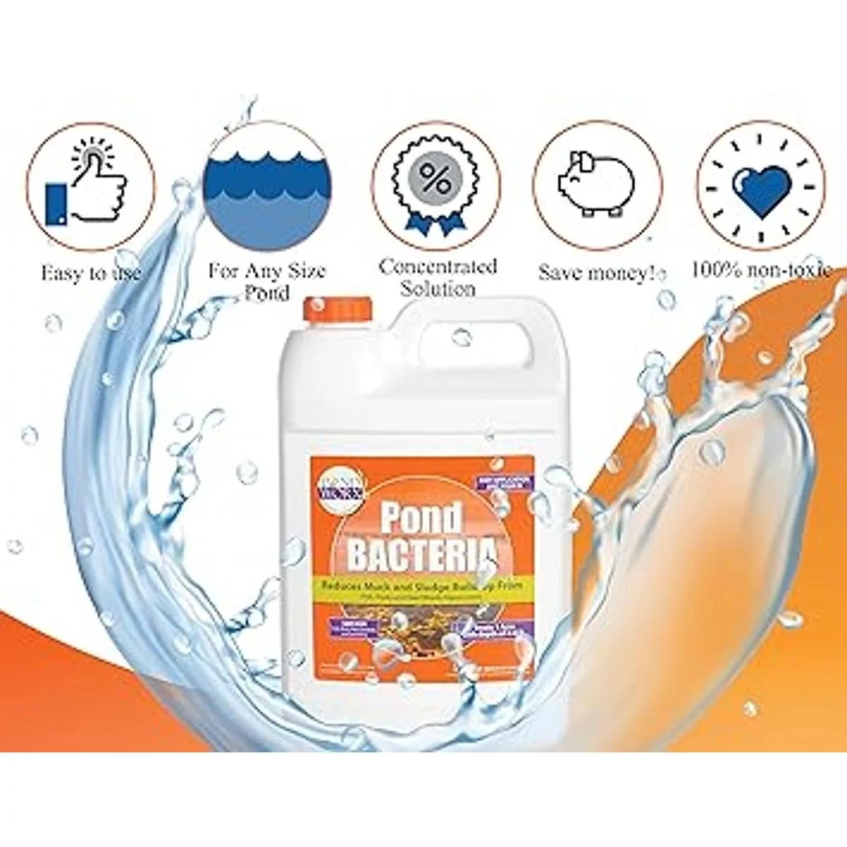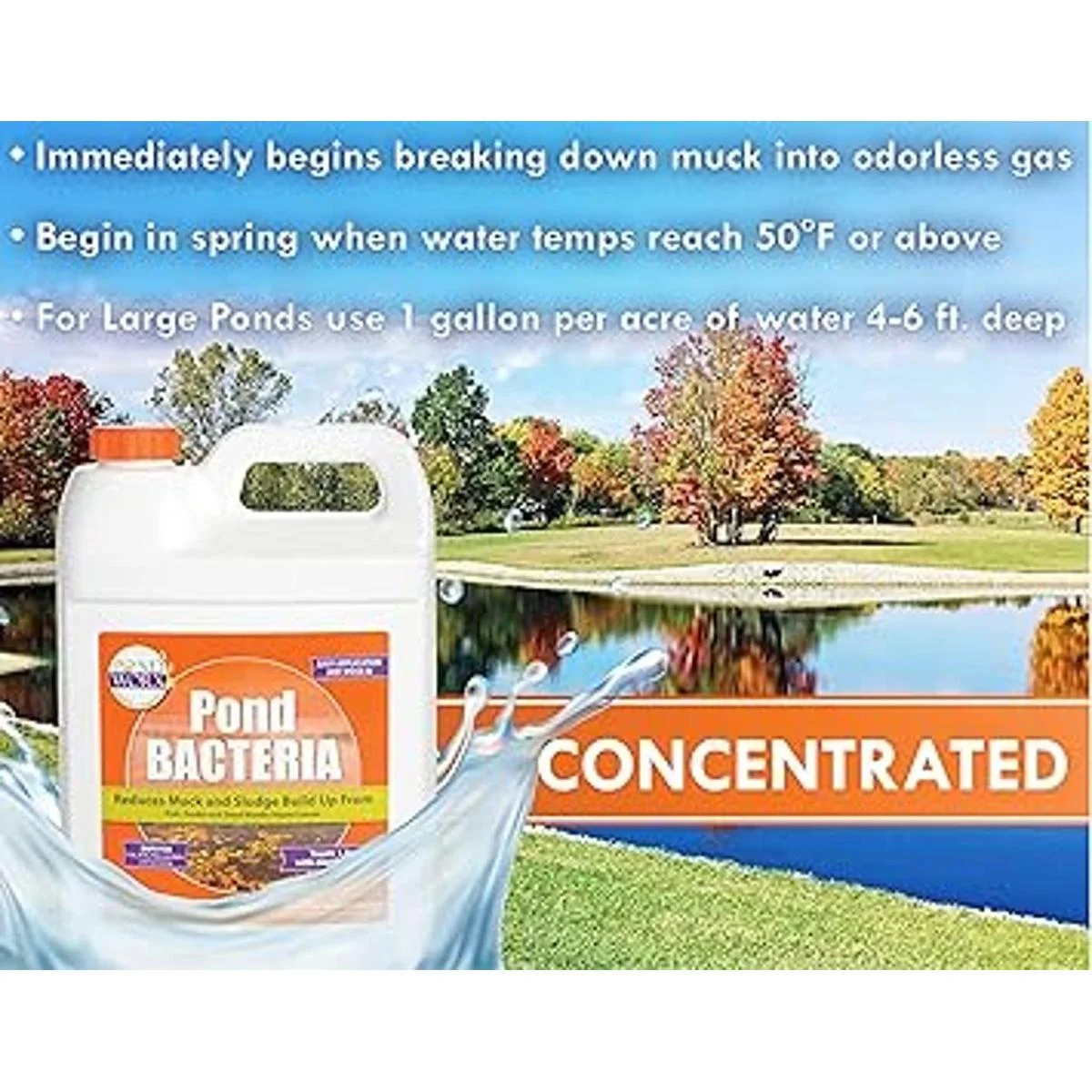 PondWorx Pond Bacteria Formulated for Large Ponds, Water Features and Safe for Koi Gallon