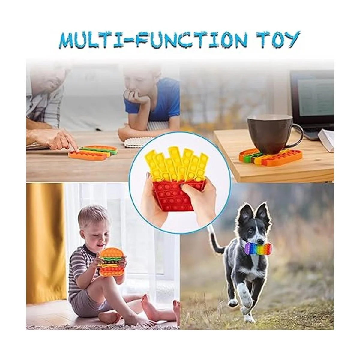 Un gran regalo para tus seres queridos: estos emocionantes juguetes pop están diseñados en formas atractivas y tienen un aspecto brillante que los hace llamativos regalos para amigos y familiares. El juguete para ansiedad de burbujas es una gran idea para meterlos en la cesta de regalo de cumpleaños o Navidad. Este juego de comida incluye 1 hamburguesa pop, 1 freír francesa, 1 pizza pop its y 1 puede reventar su